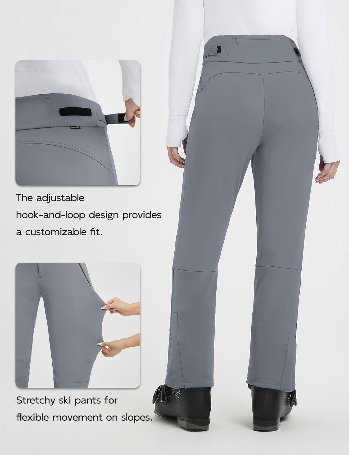 baleaf Snow Pants Womens Fleece Lined Water Resistant Insulated Softshell Winter Ski Pants with Pockets Snowboarding Hiking(Dark Gray)