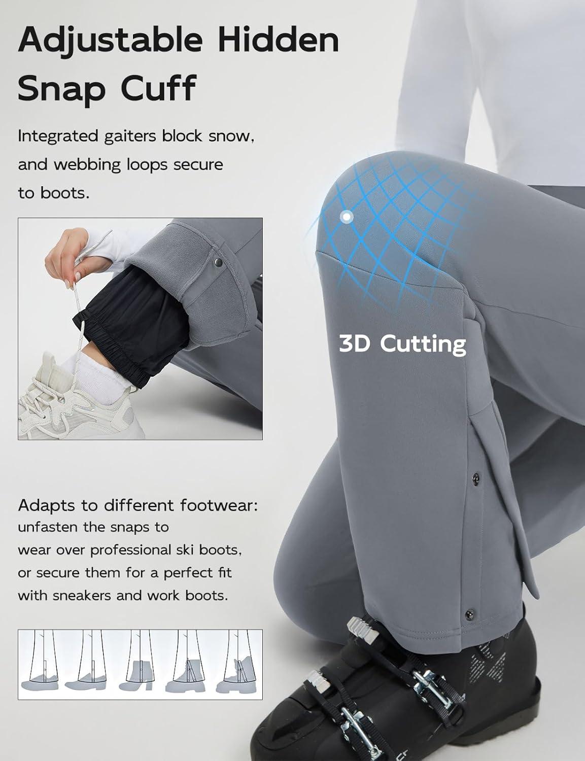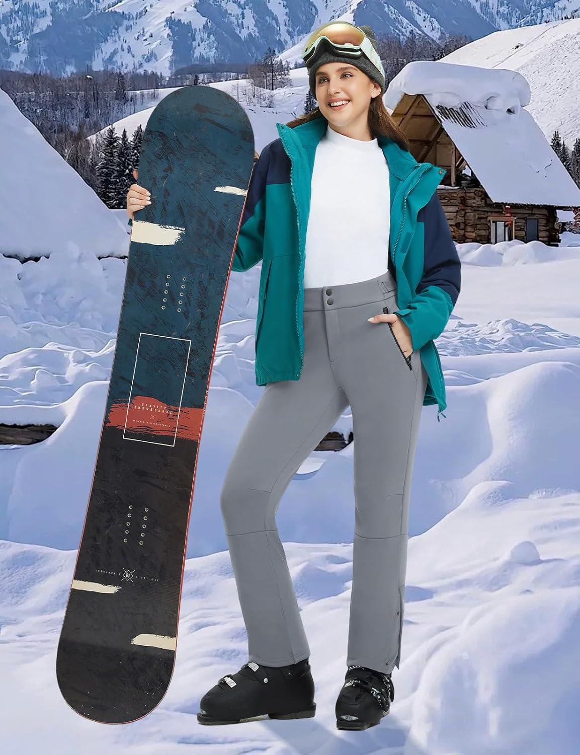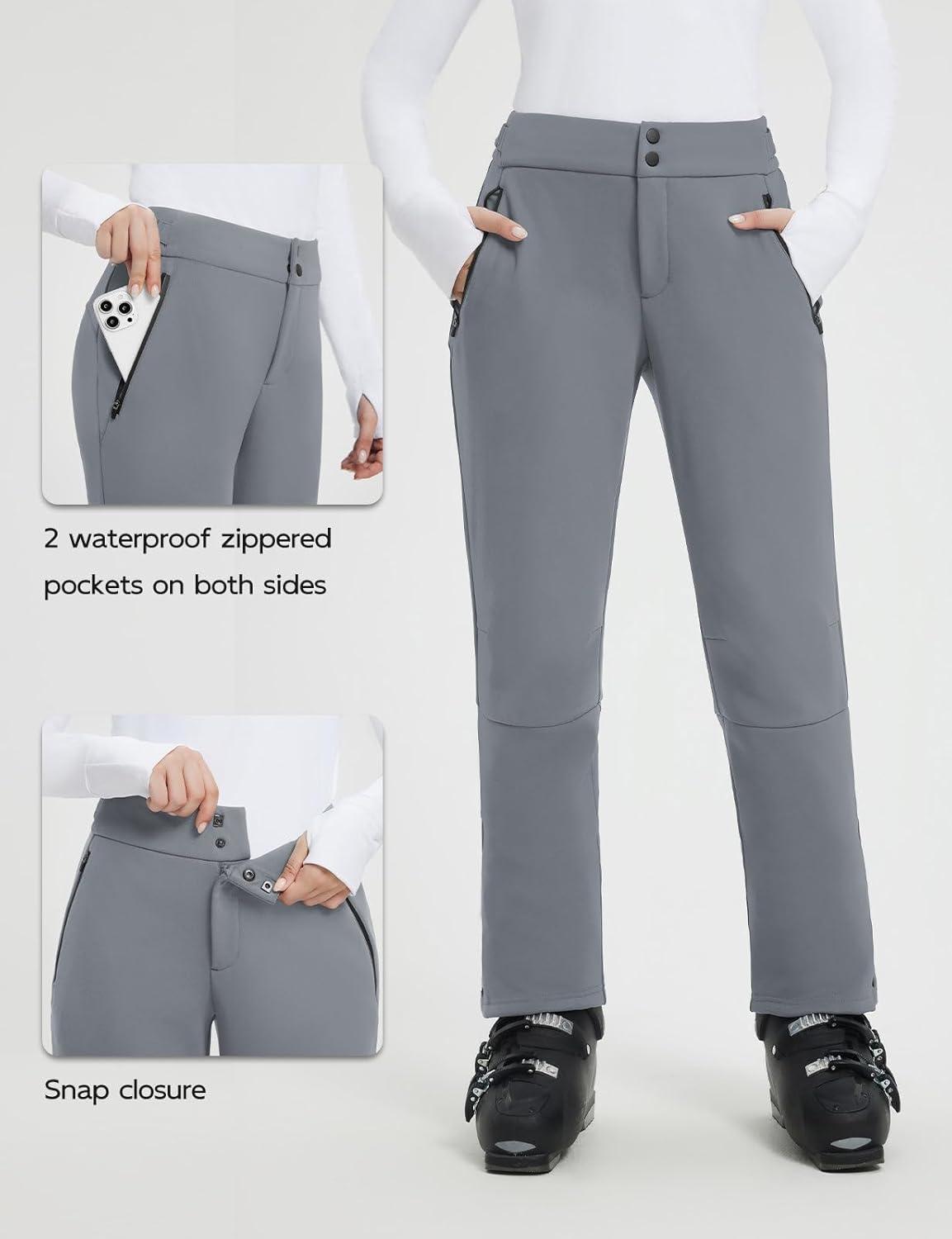 imagebaleaf Snow Pants Womens Fleece Lined Water Resistant Insulated Softshell Winter Ski Pants with Pockets Snowboarding HikingDark Gray