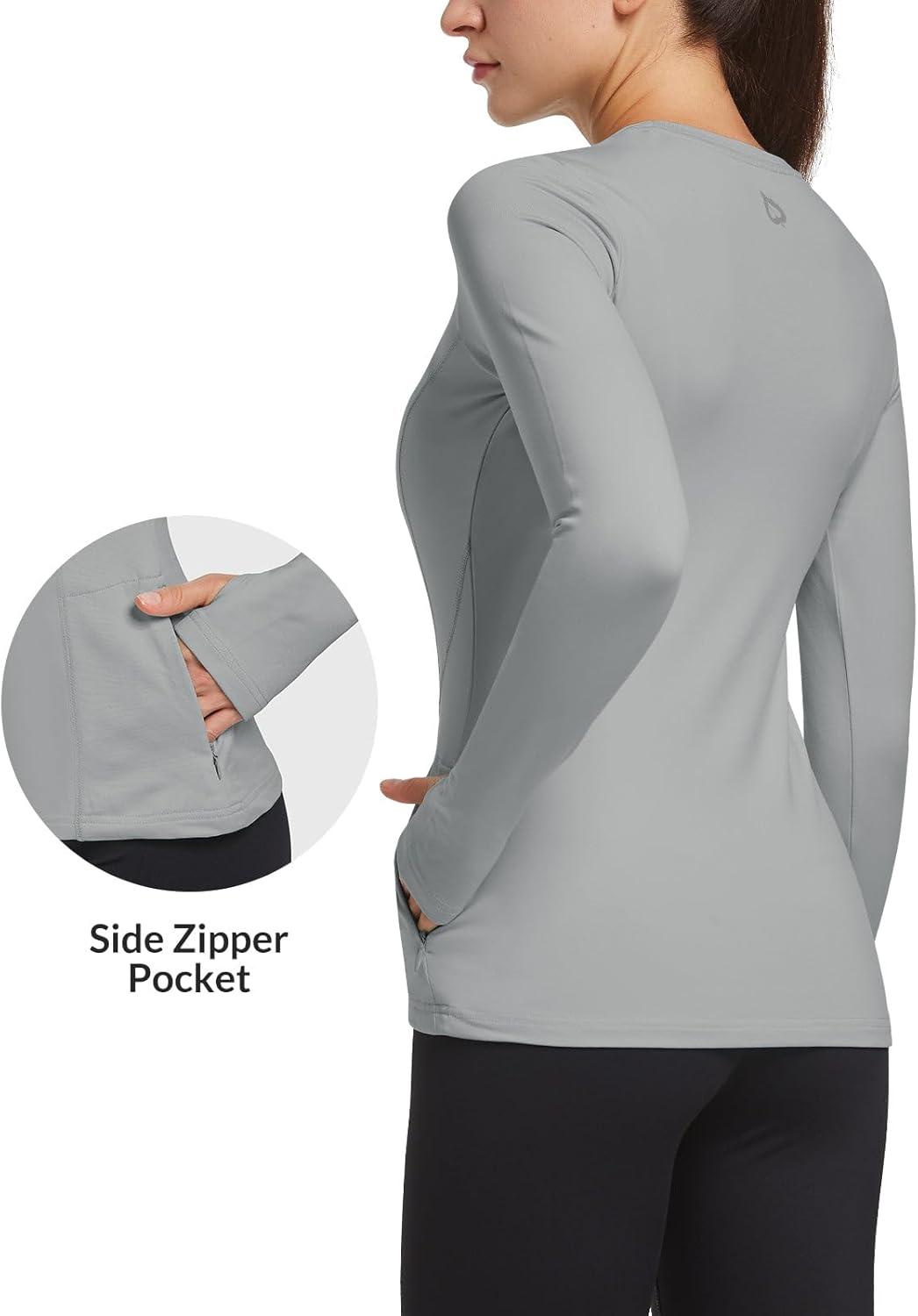 Get a free gift with your purchase of baleaf Thermal Shirts for Women Long Sleeve Fleece Tops Running Workout Cold Weather Gear Compression Zipper Pocket(Light Gray). Limited quantities available!
