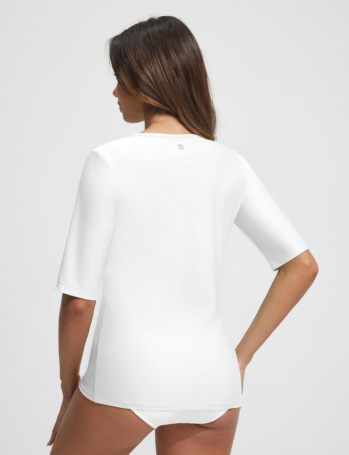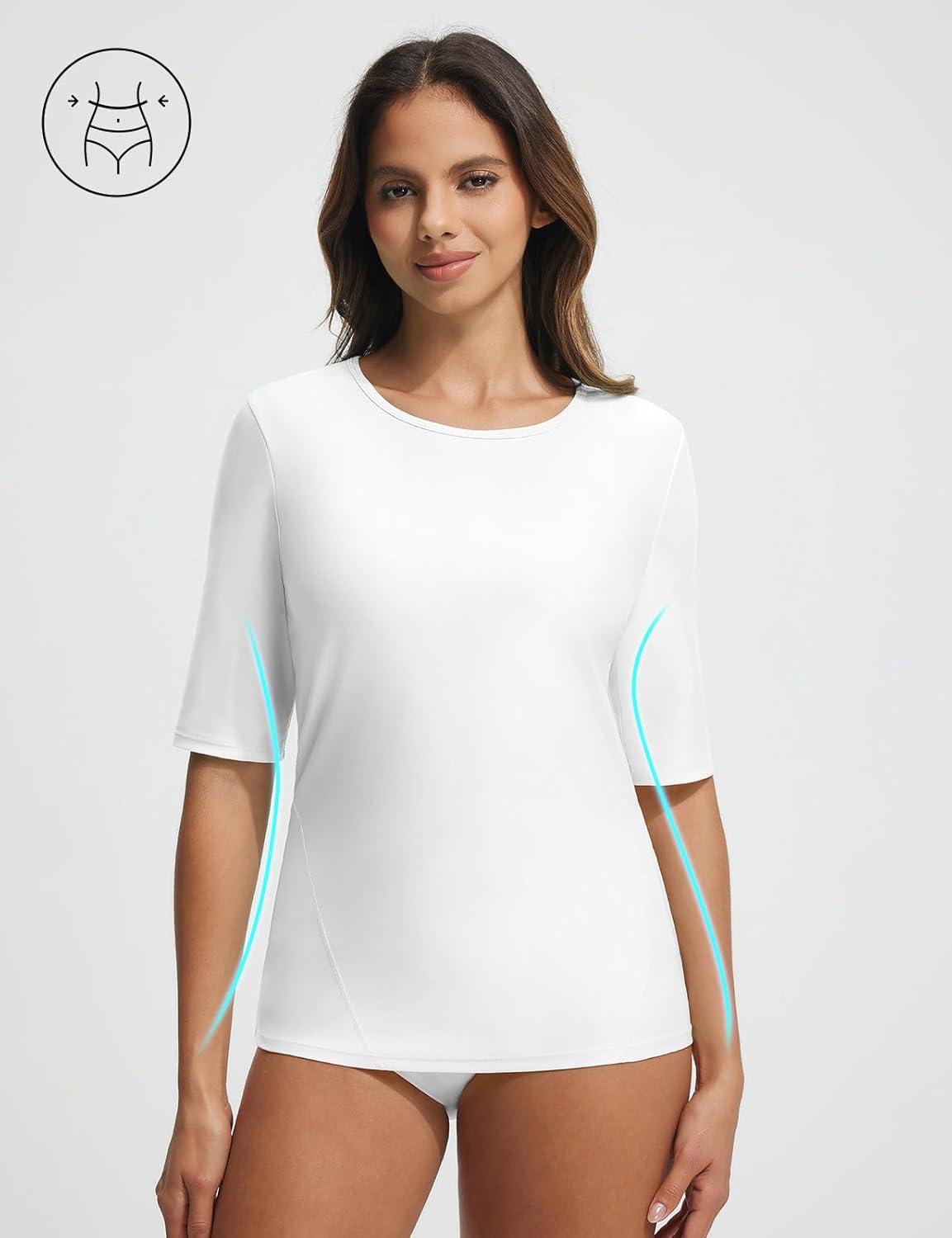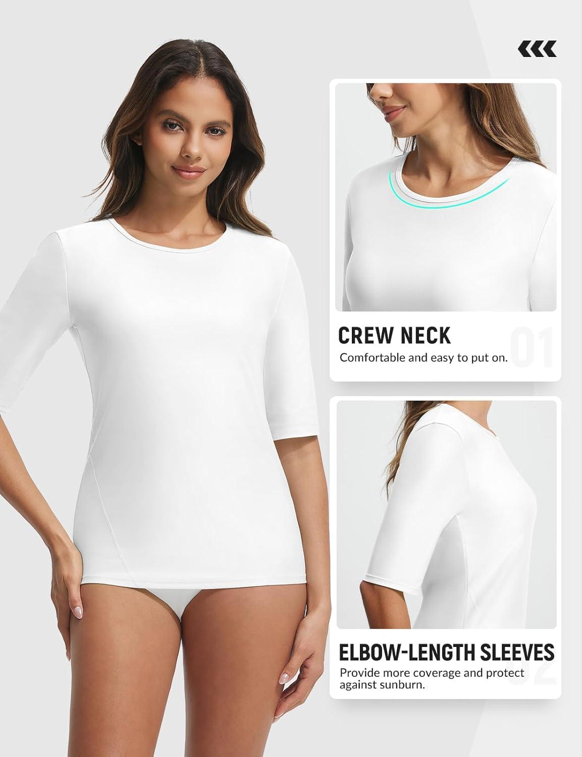 imagebaleaf UPF50 Rash Guard for Women Elbow Length UV Protection Swim Shirts Quick Dry Sun Shirts Lightweight Swimsuits TopStar White