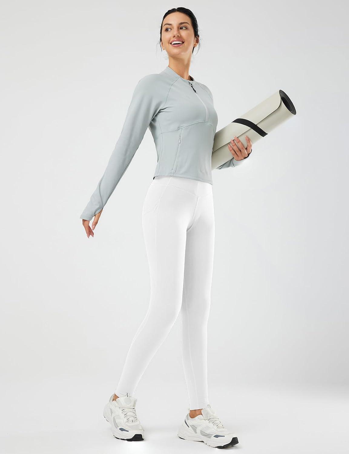 baleaf Winter Clothing for Women Leggings Fleece Lined Tights Thermal Warm Thick Yoga Pants Cold Weather Gear(White)