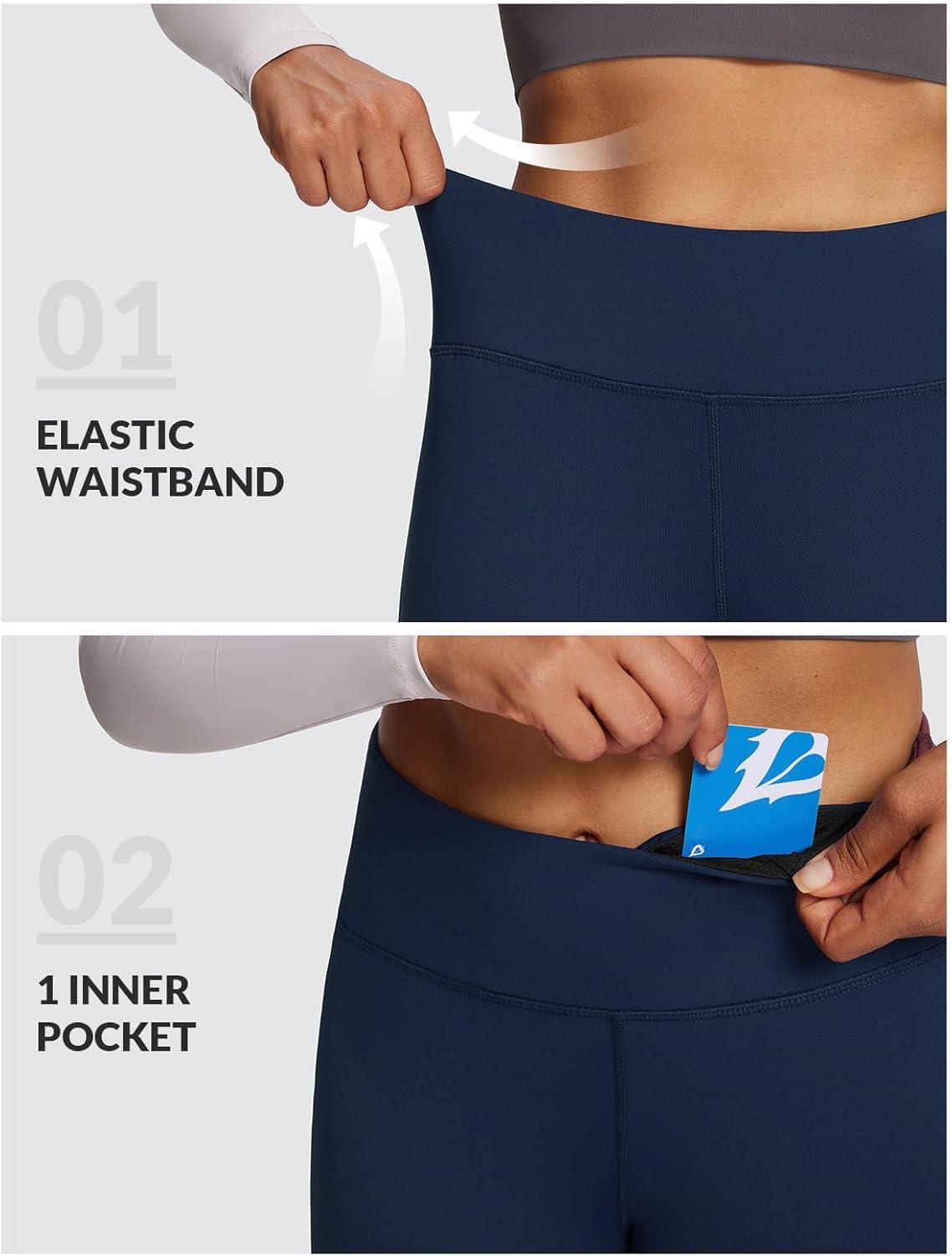 baleaf Winter Clothing Women Leggings Fleece Lined Tights Thermal Warm Thick Cold Weather Gear 1 Pockets(Dark Blue)