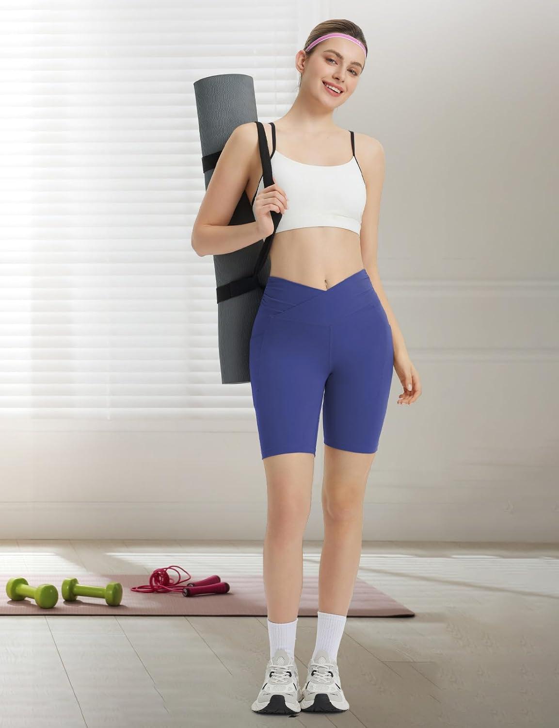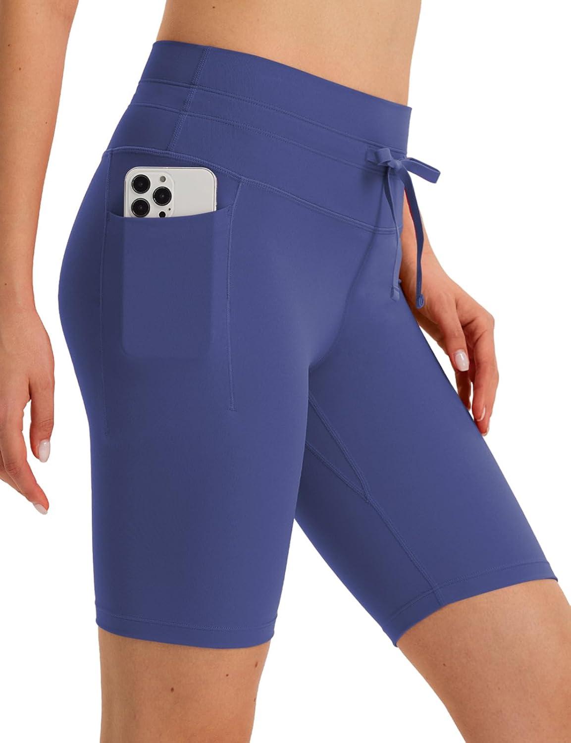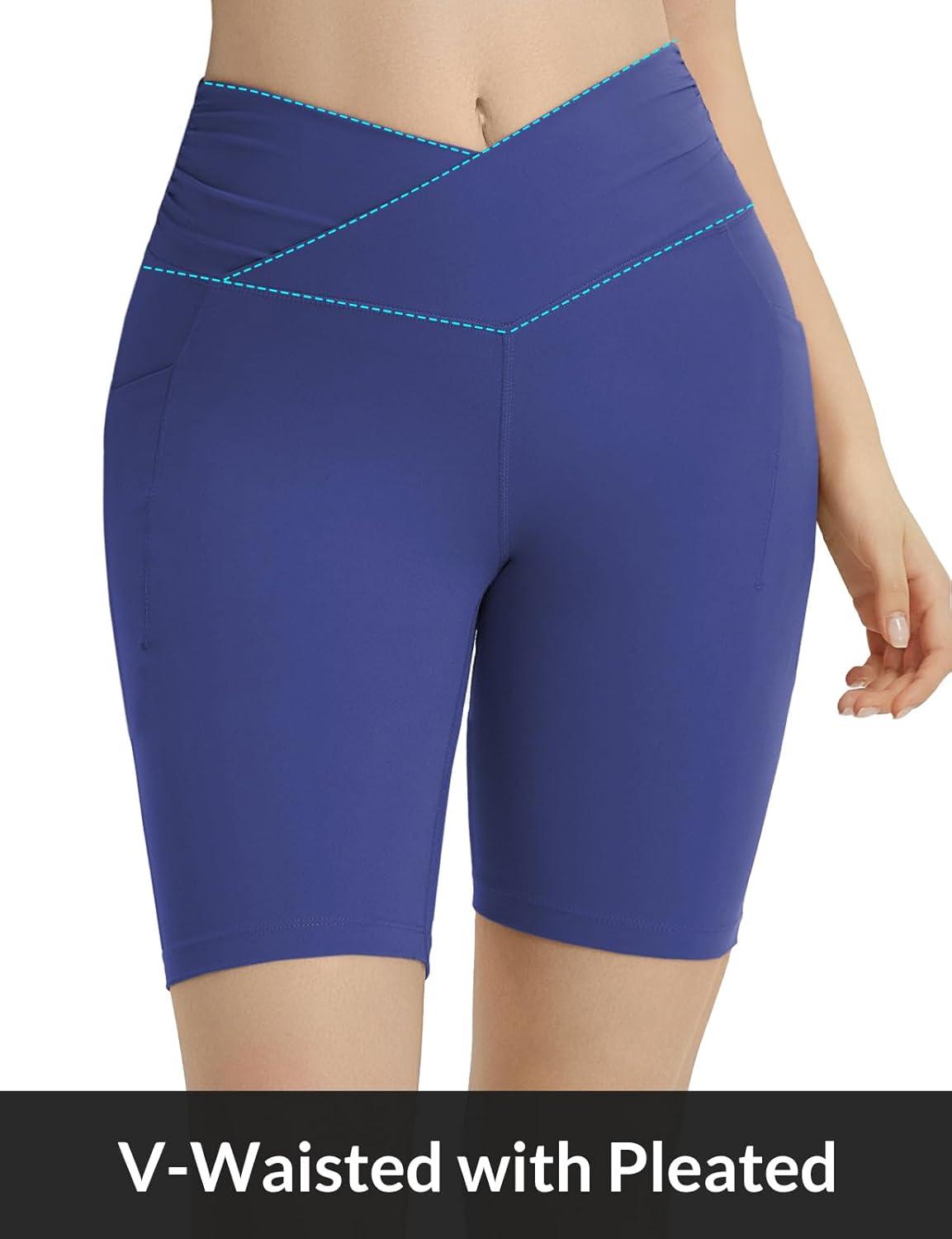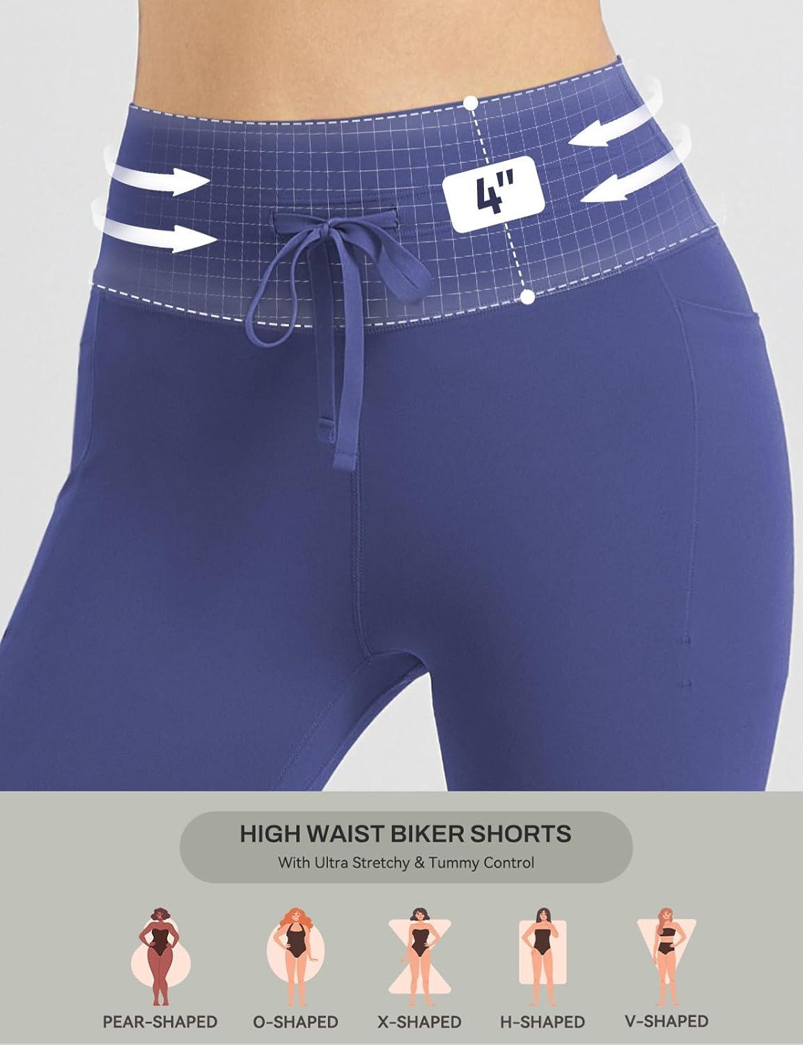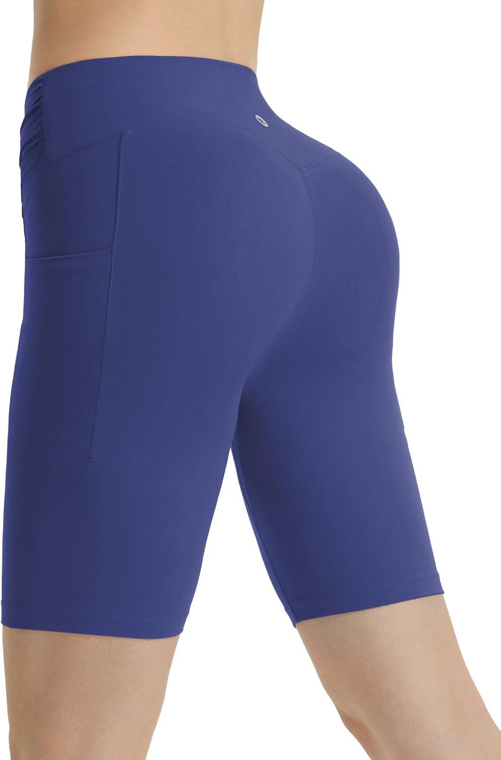 imagebaleaf Women 8quot Biker Shorts with Pockets High Waisted Workout Short Tummy Control Yoga Gym Spandex Running VolleyballNavy Blue