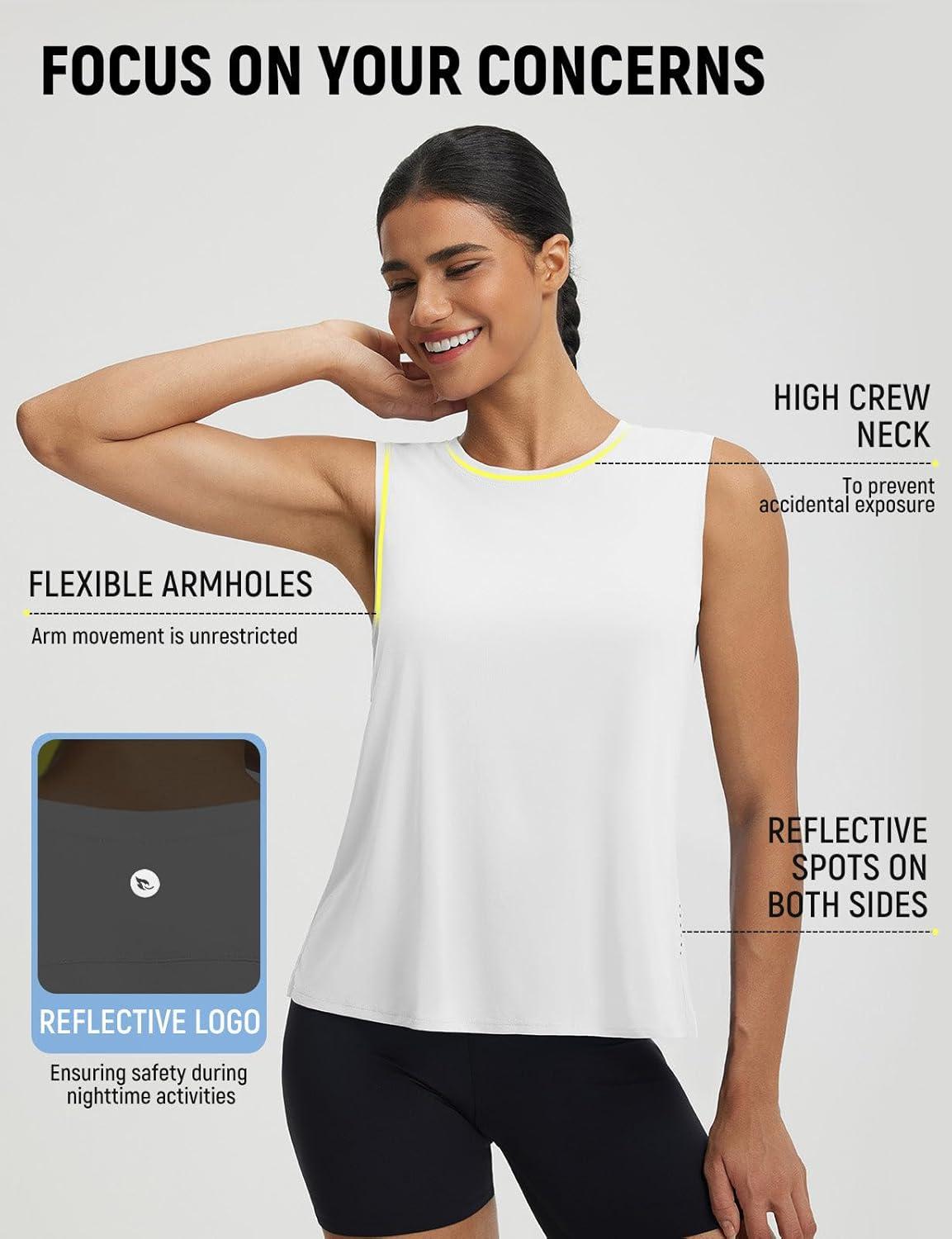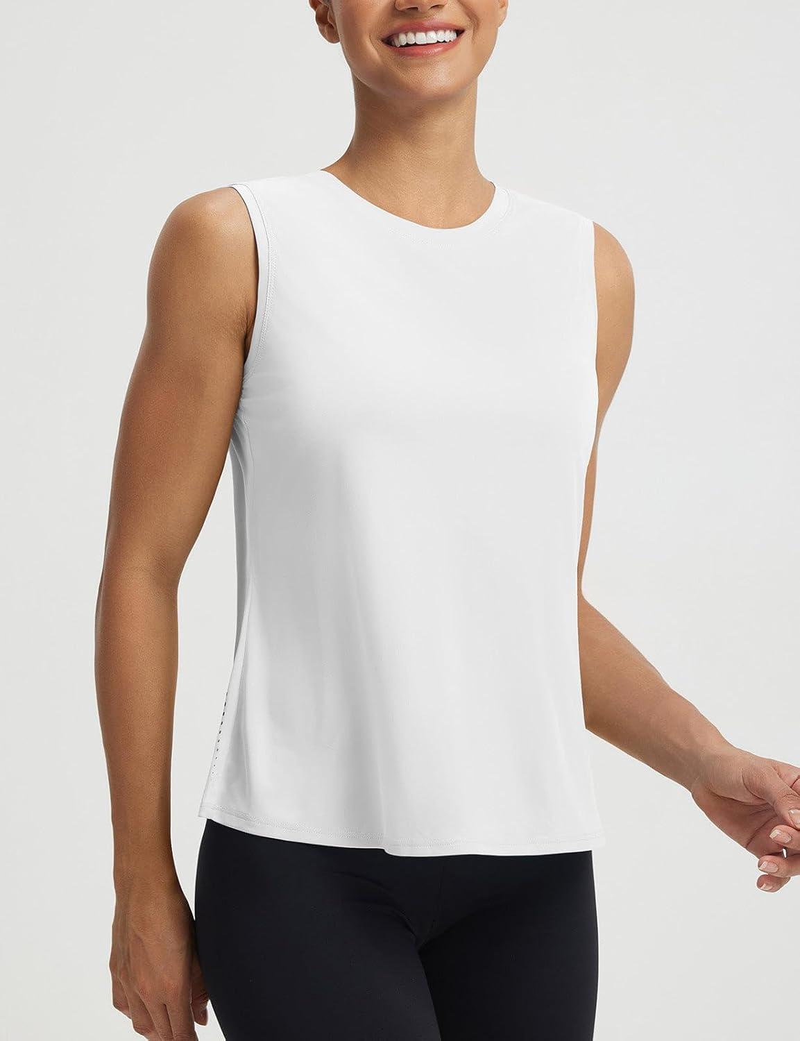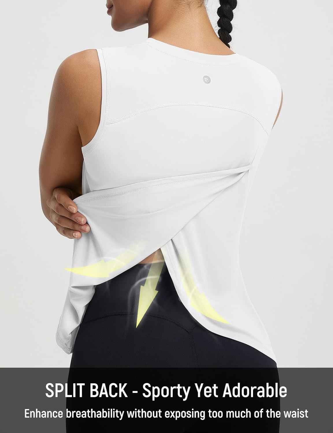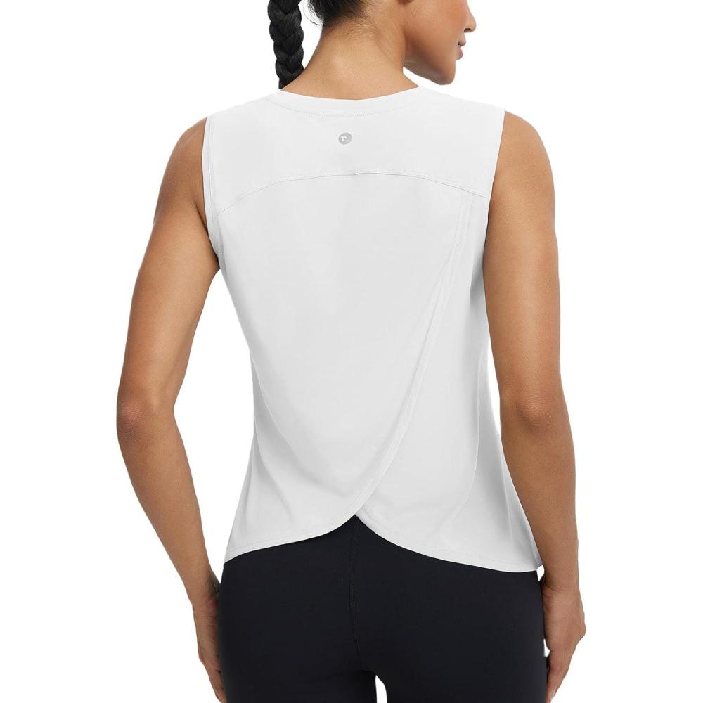 imagebaleaf Women Running Sleeveless Tops Athletic Tank Tops Workout Open Back UPF 50 Tennis Gym Loose Fit LightweightWhite