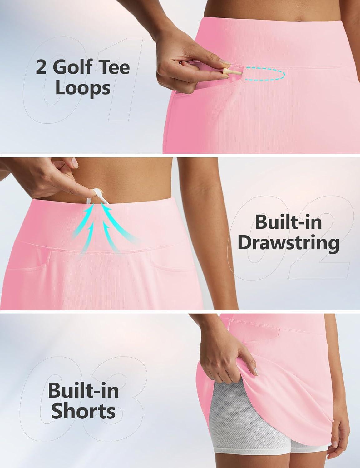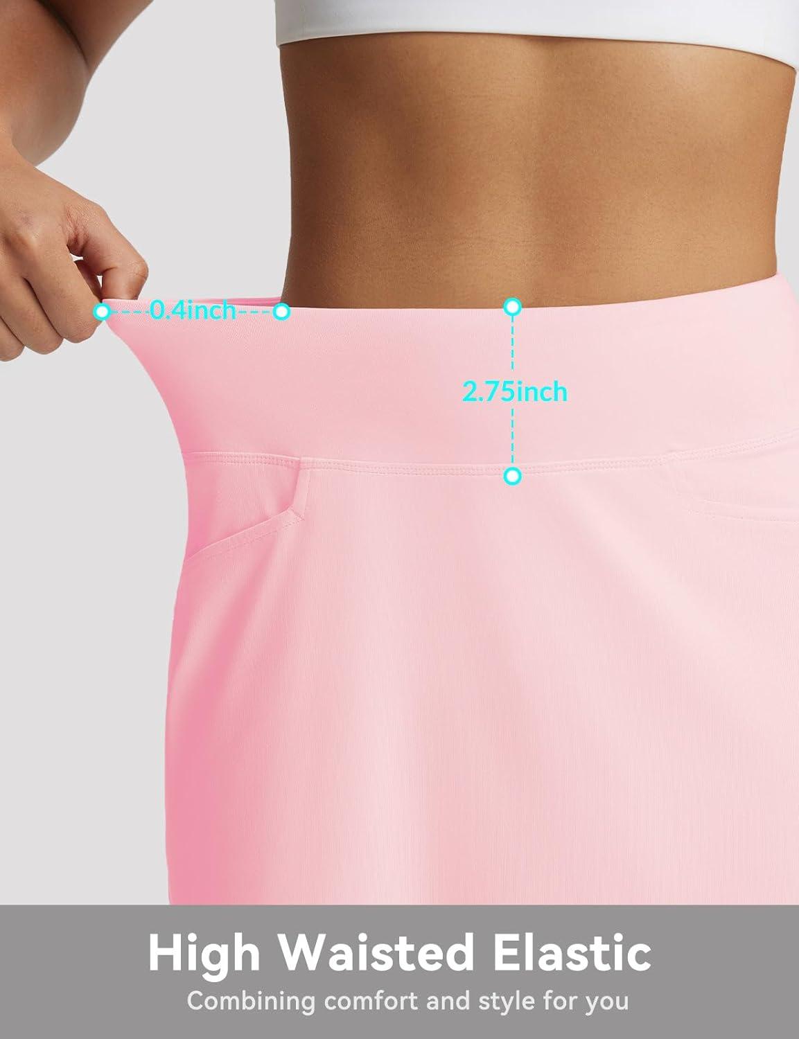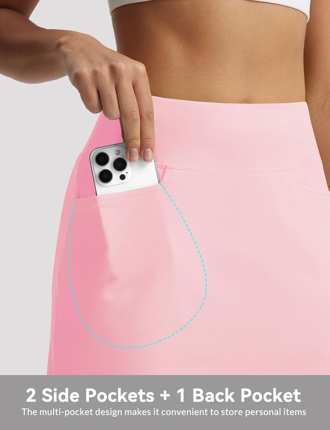 baleaf Women’s 17″ Golf Skirts 3 Pockets High Waisted Stretchy Tennis Athletic Skorts Workout Running Casual Summer(Light Pink)