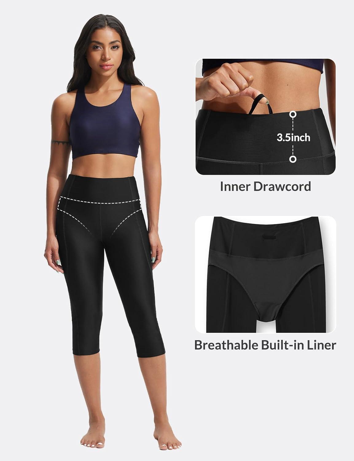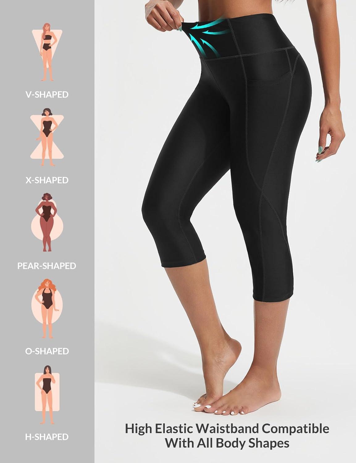 imagebaleaf Womens 18quot High Waisted Swim Pants Long Swim Capris UPF50 Swimsuit with Liner and PocketsBlack