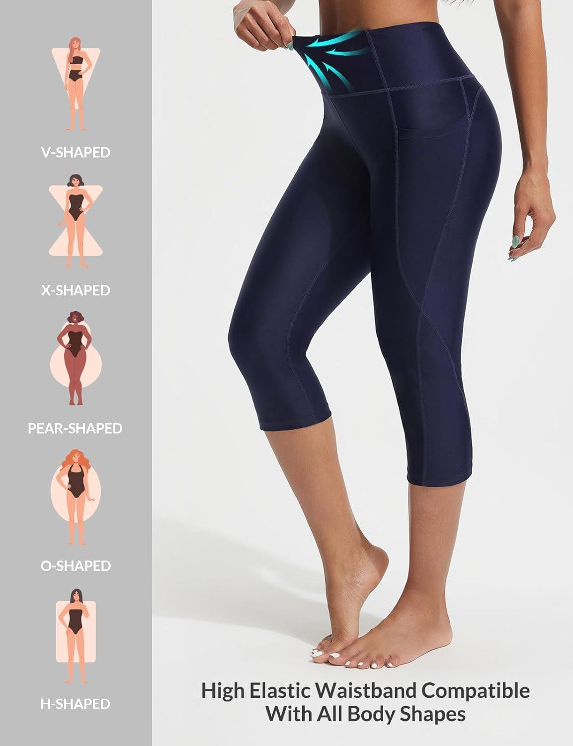 imagebaleaf Womens 18quot High Waisted Swim Pants Long Swim Capris UPF50 Swimsuit with Liner and PocketsNavy Blue