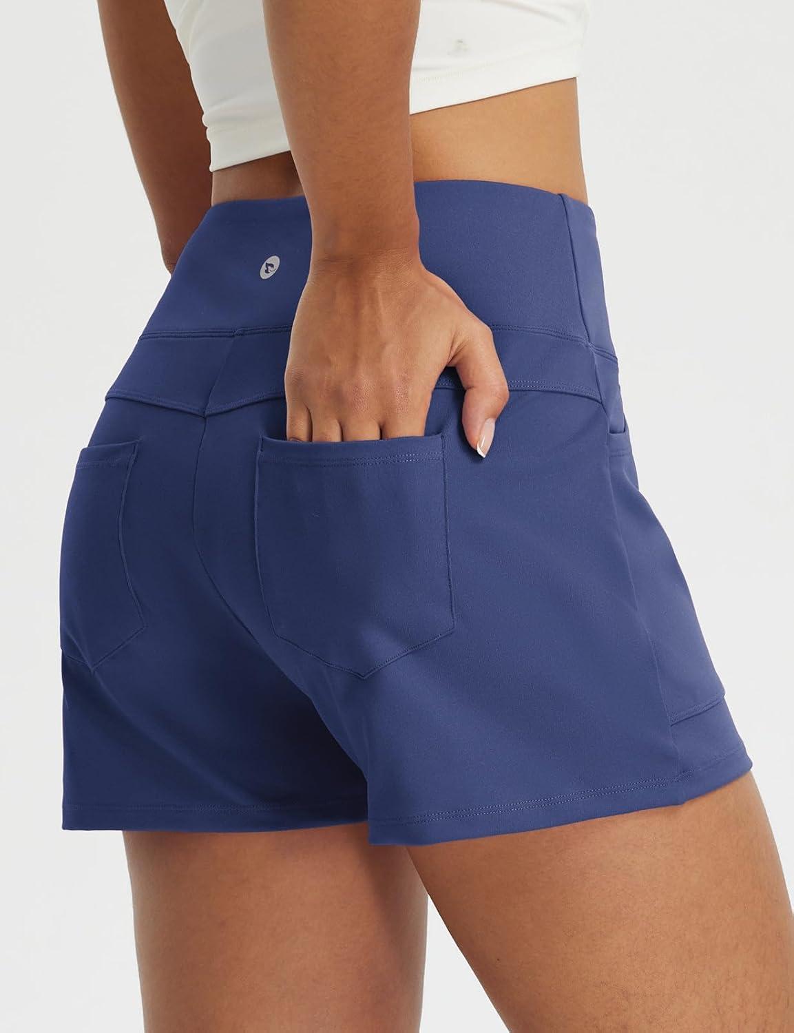 imagebaleaf Womens 25quot Yoga Shorts with Four Pockets Lounge Casual Shorts High Waist Elastic Athletic Running SweatBlue