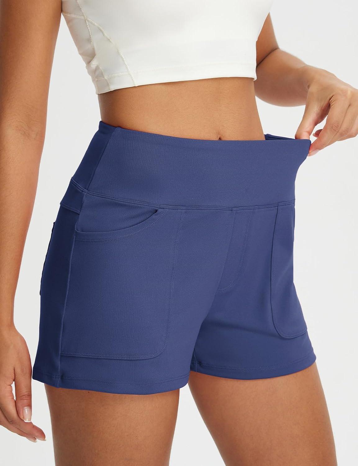 baleaf Womens 2.5″ Yoga Shorts with Four Pockets Lounge Casual Shorts High Waist Elastic Athletic Running Sweat(Blue)