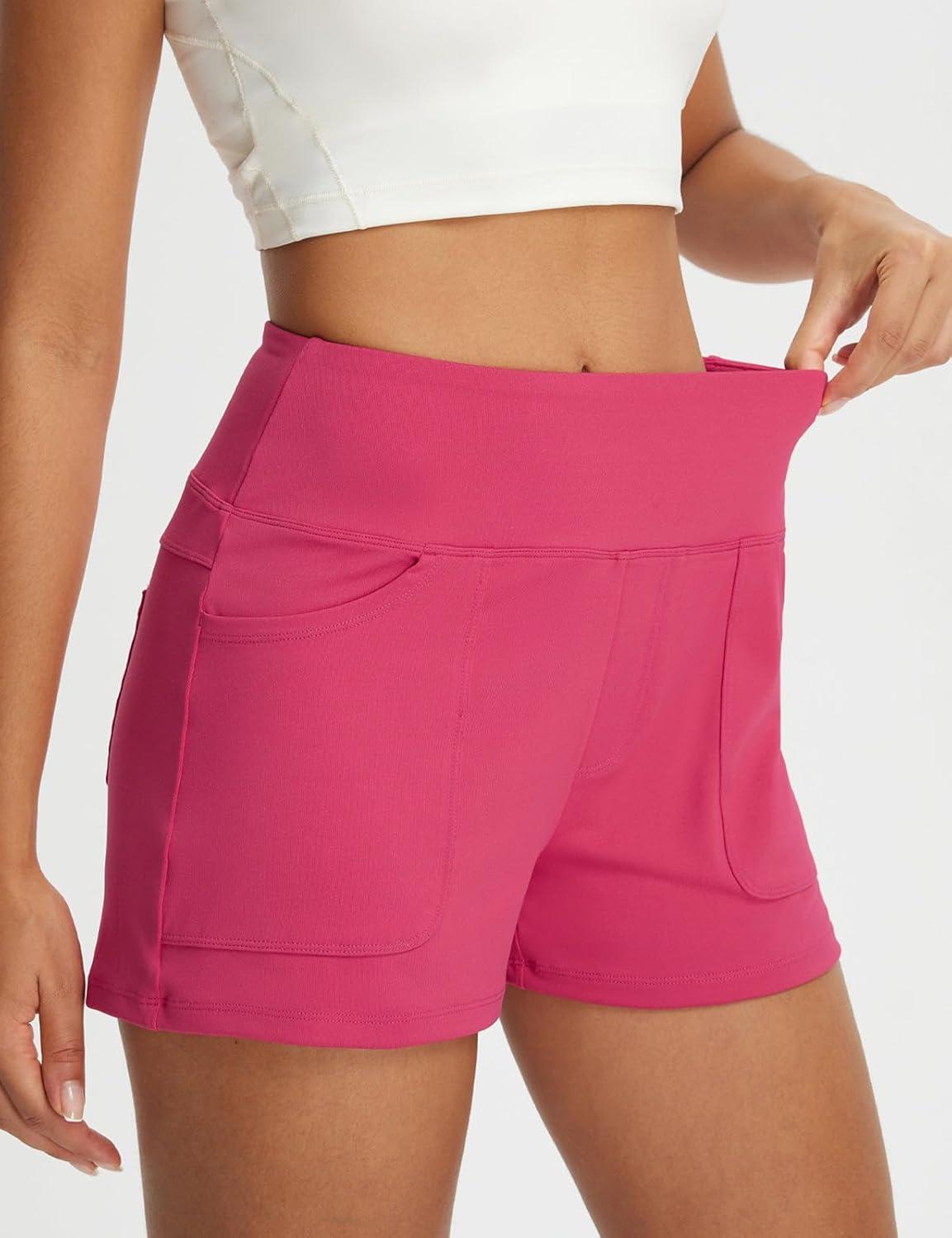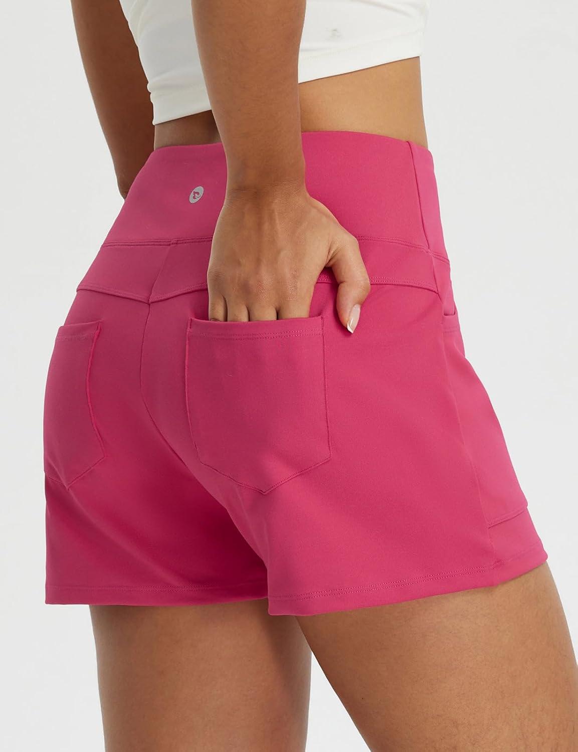 baleaf Womens 2.5" Yoga Shorts with Four Pockets Lounge Casual Shorts High Waist Elastic Athletic Running Sweat(Pink)
