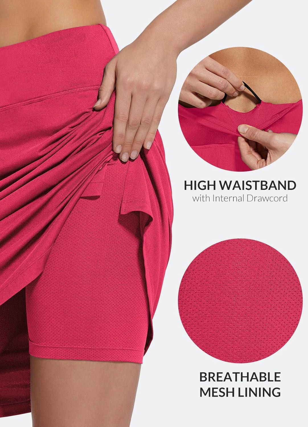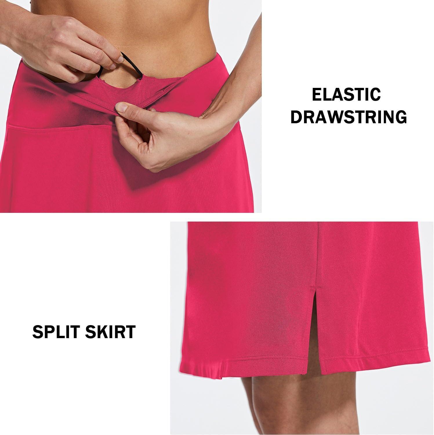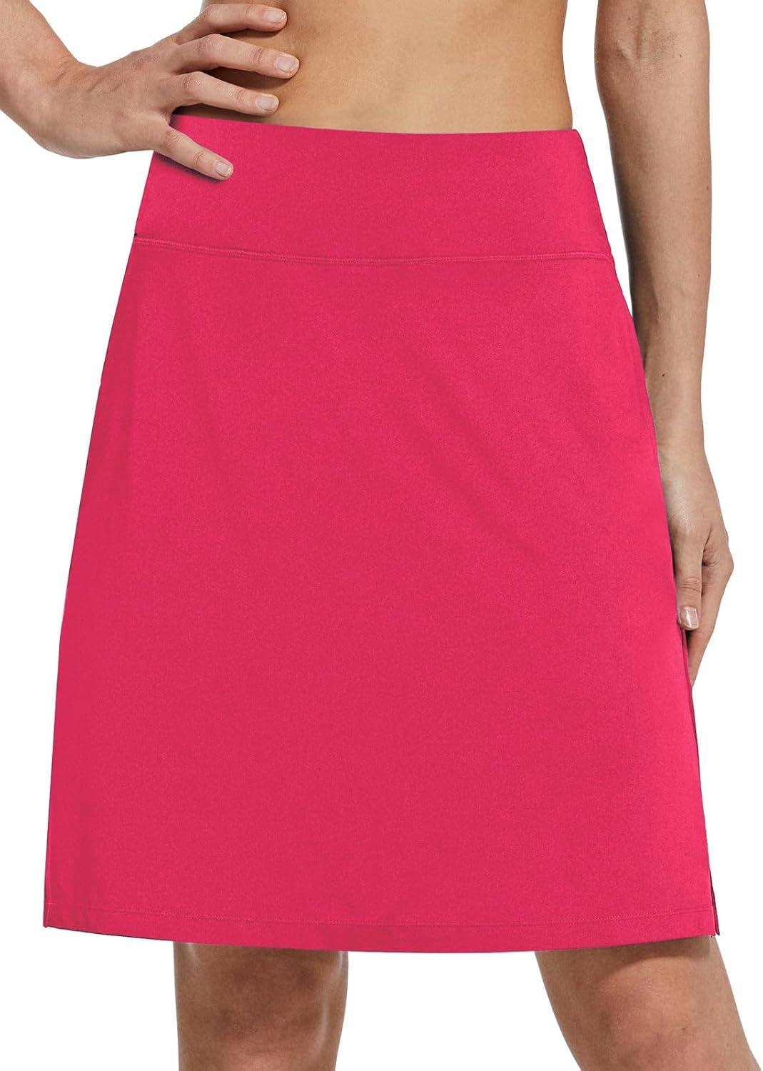 baleaf Women’s 20″ Knee Length Golf Skorts Long Athletic Tennis Skirts for Women Active Casual Pockets UV Protection(01-deep Pink)