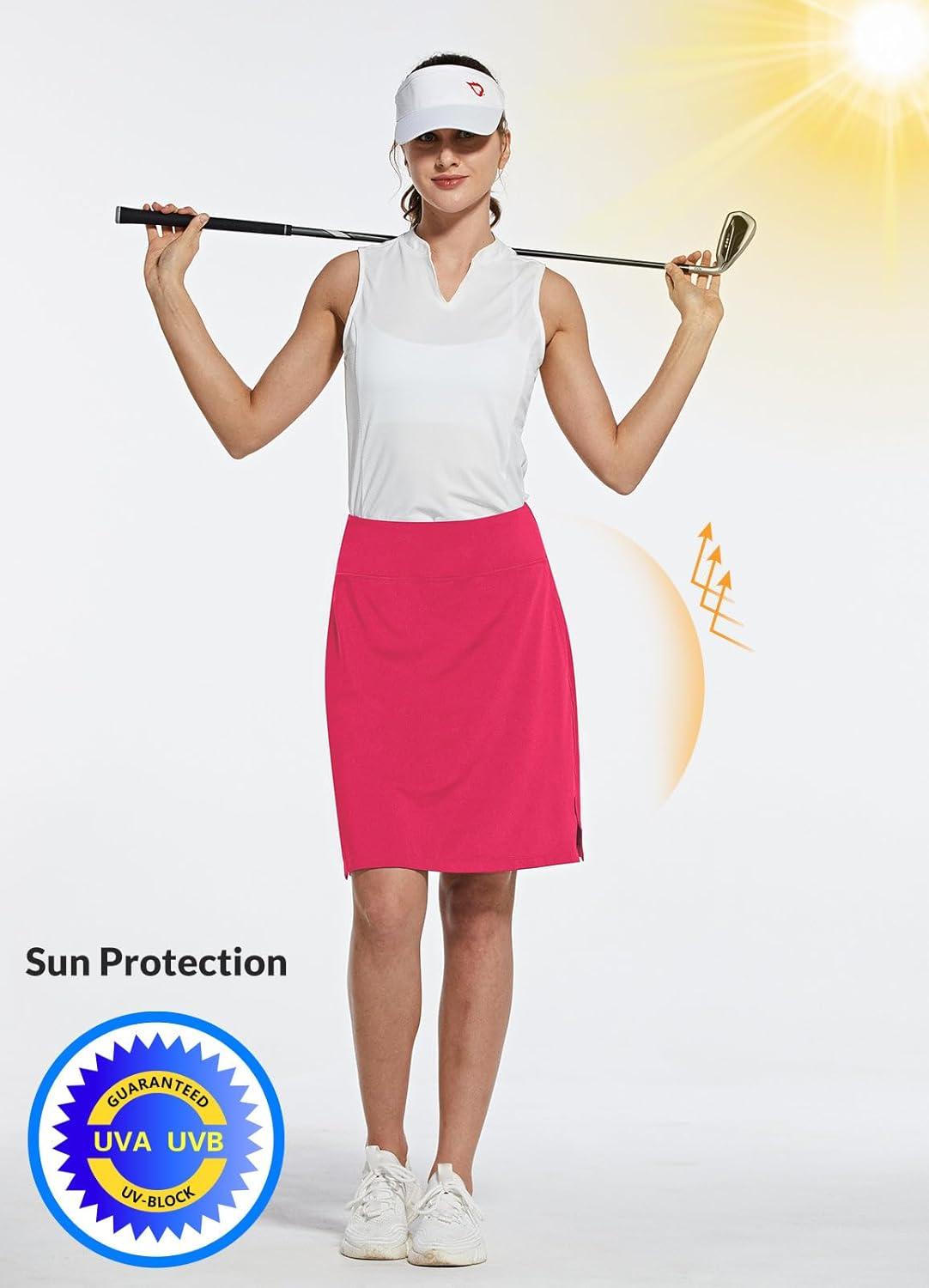 imagebaleaf Womens 20 Knee Length Golf Skorts Long Athletic Tennis Skirts for Women Active Casual Pockets UV Protection01deep Pink