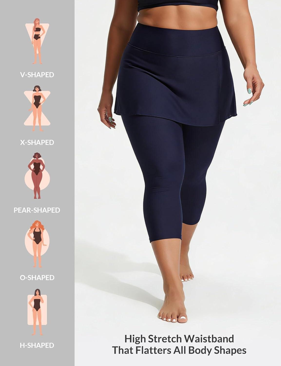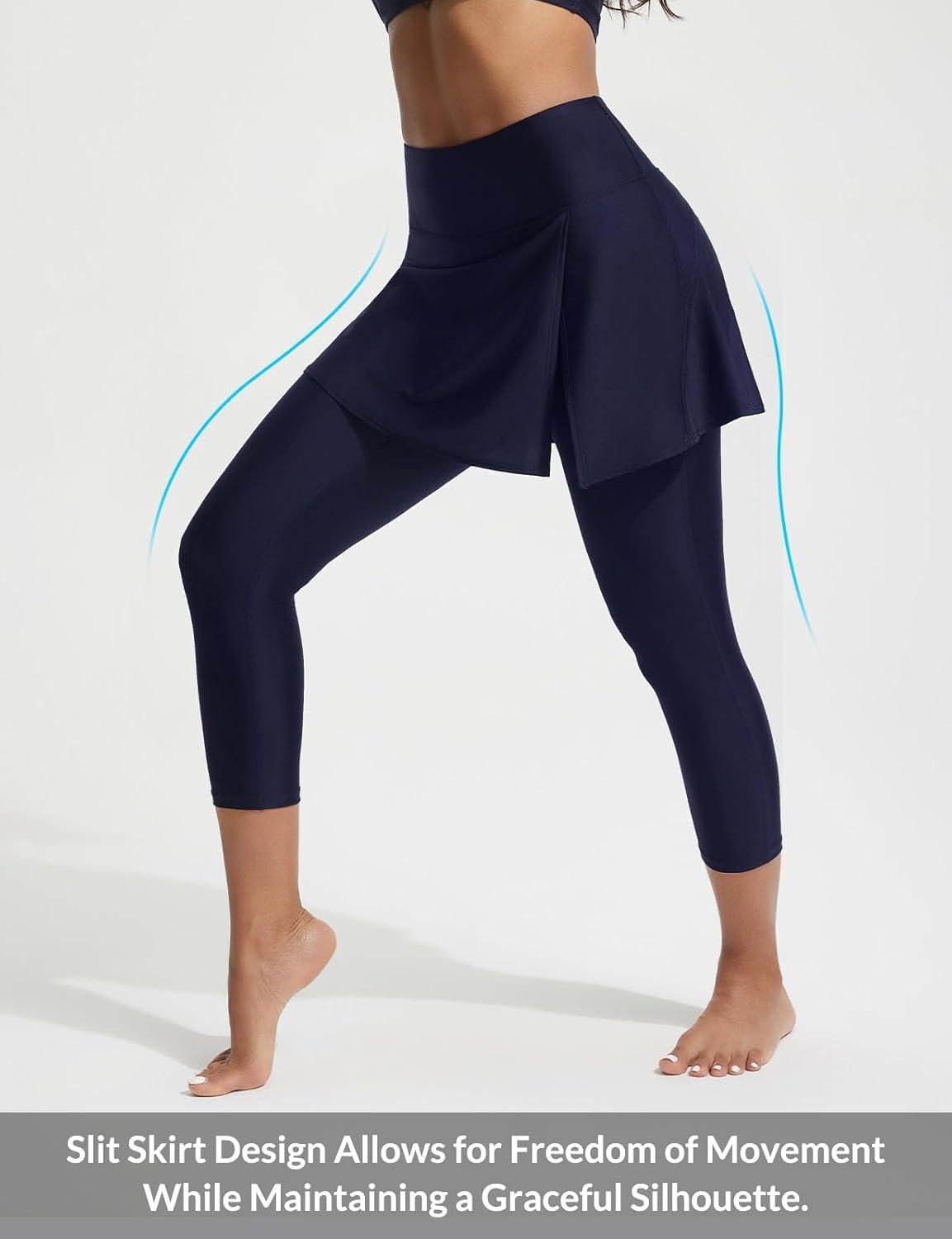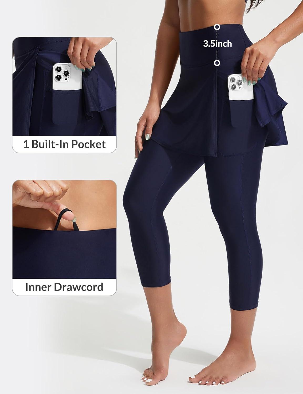 BALEAF Women’s 20″ Swim Leggings with Skirt High Waisted Skirted Pants Long Swimming Capris UPF50+ with Liner and Pockets(Navy Blue)