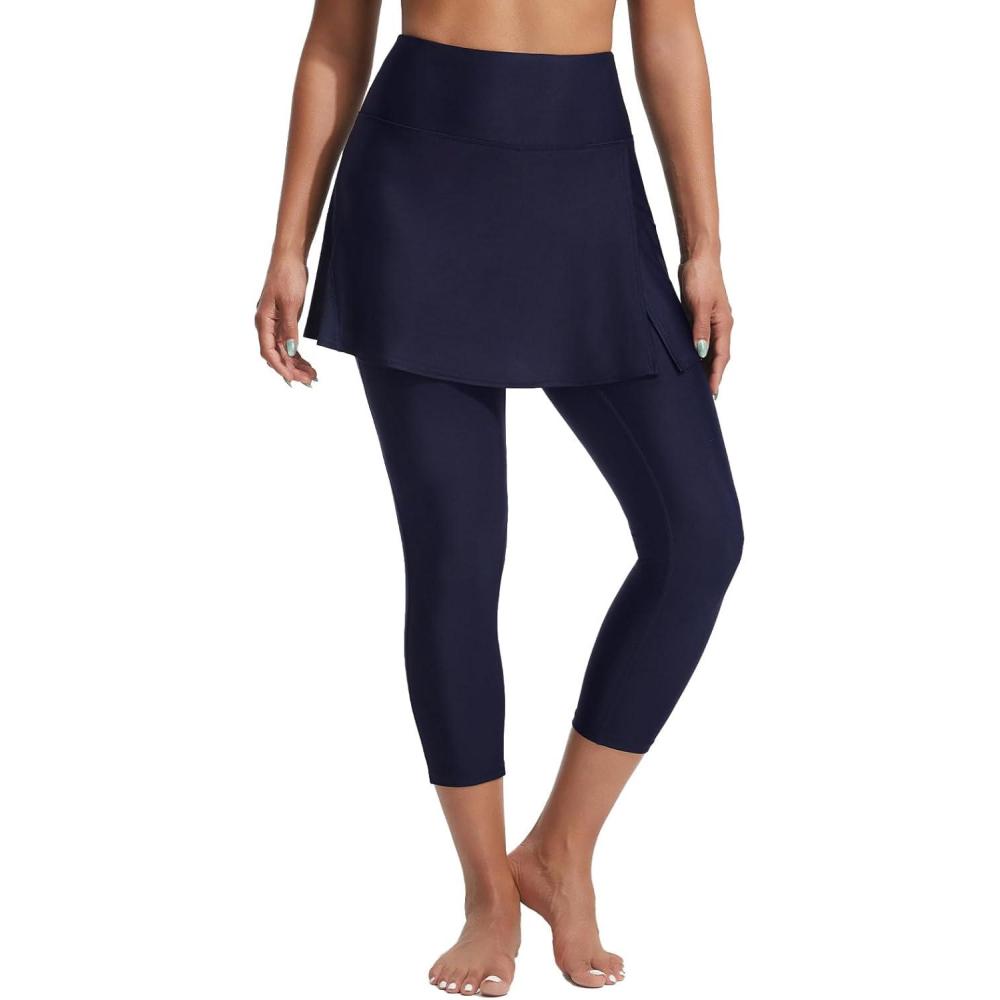 imageBALEAF Womens 20 Swim Leggings with Skirt High Waisted Skirted Pants Long Swimming Capris UPF50 with Liner and PocketsNavy Blue