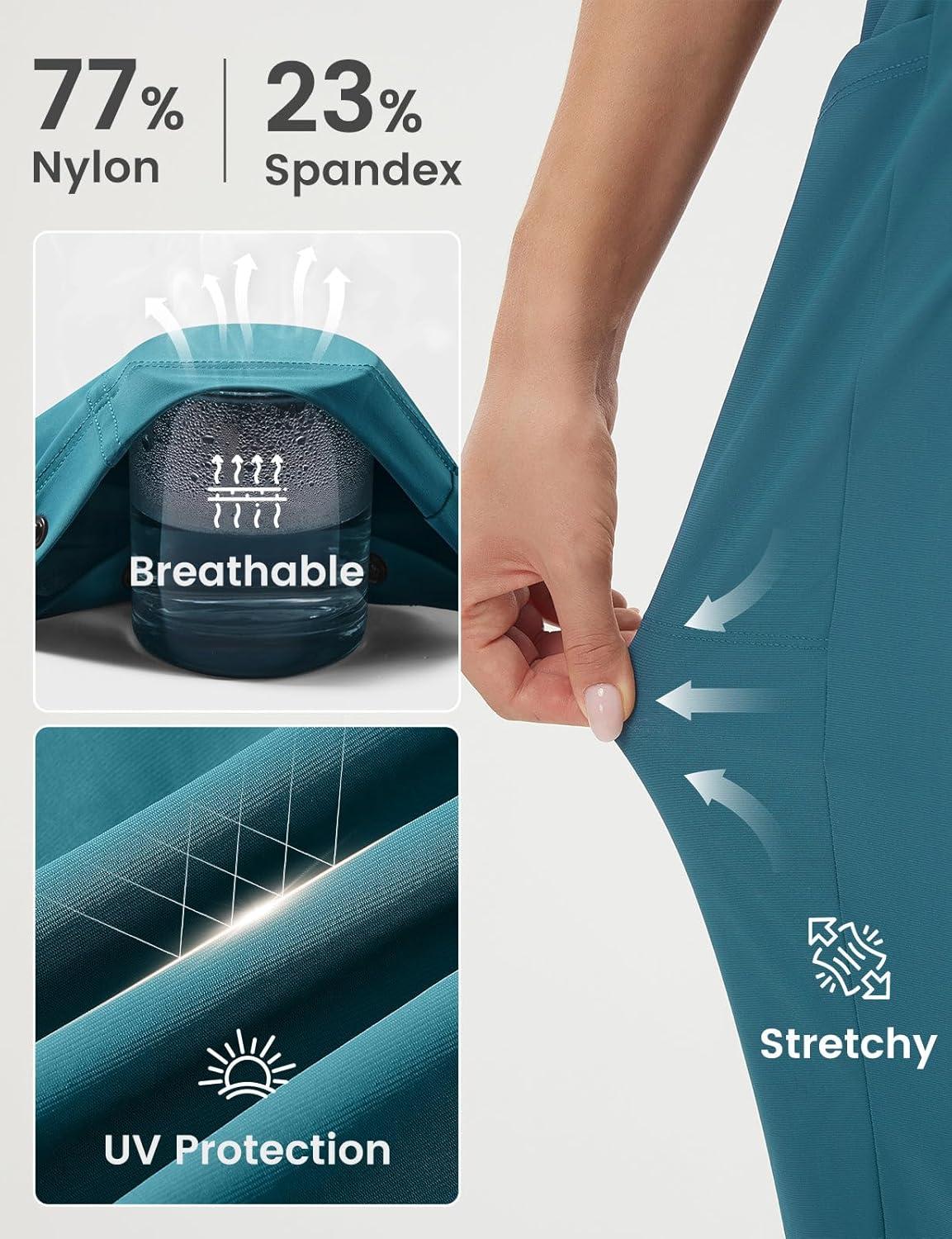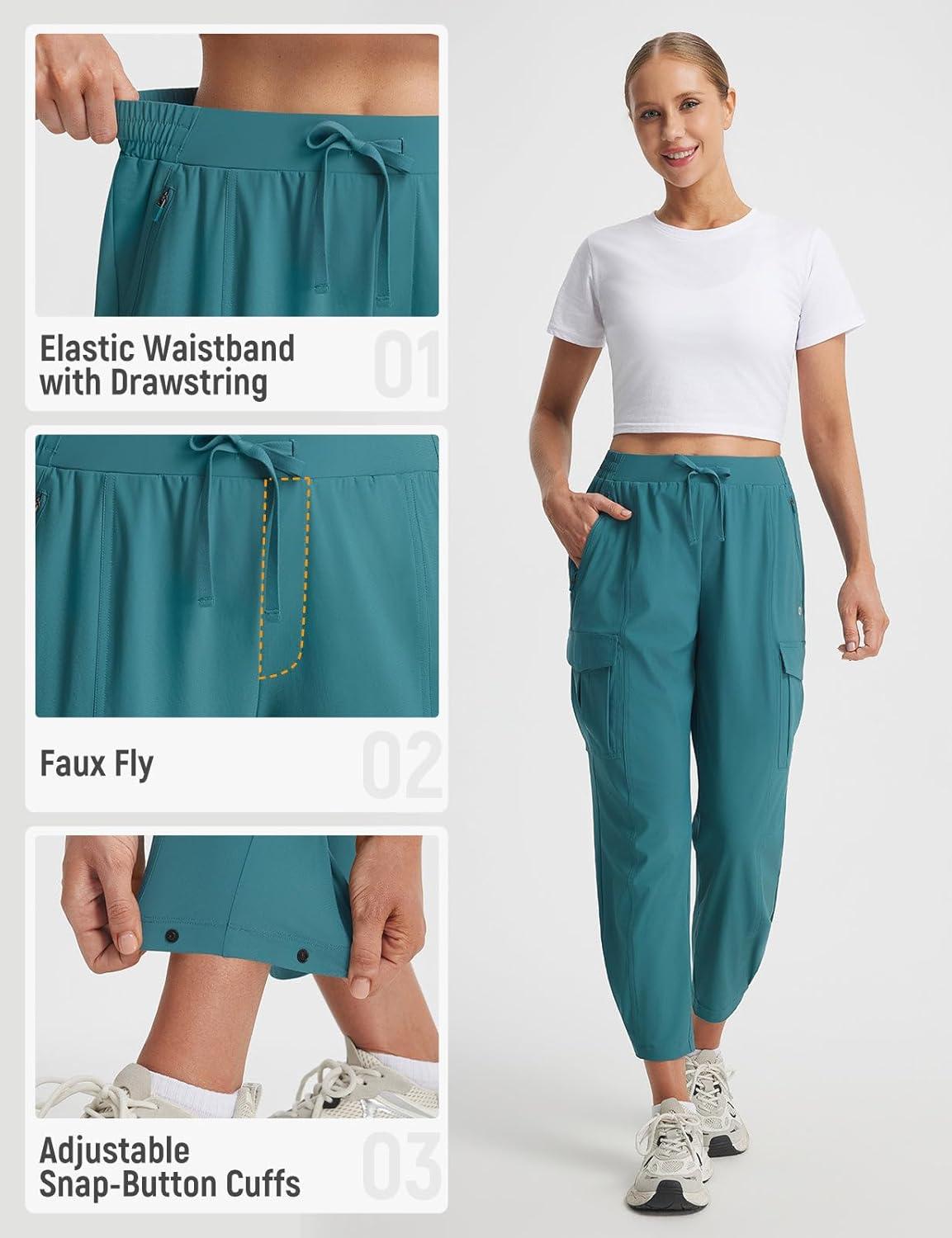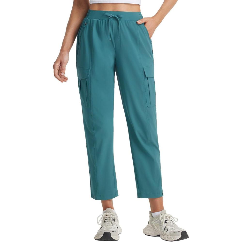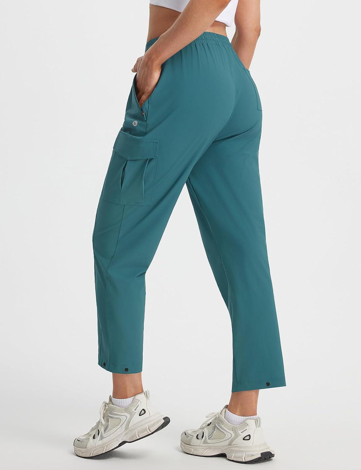 baleaf Women’s 26” Travel Pants with Zipper Pockets Petite Ankle Slacks Lightweight Stretch Quick Dry Cargo Summer Cool(Dark Green)