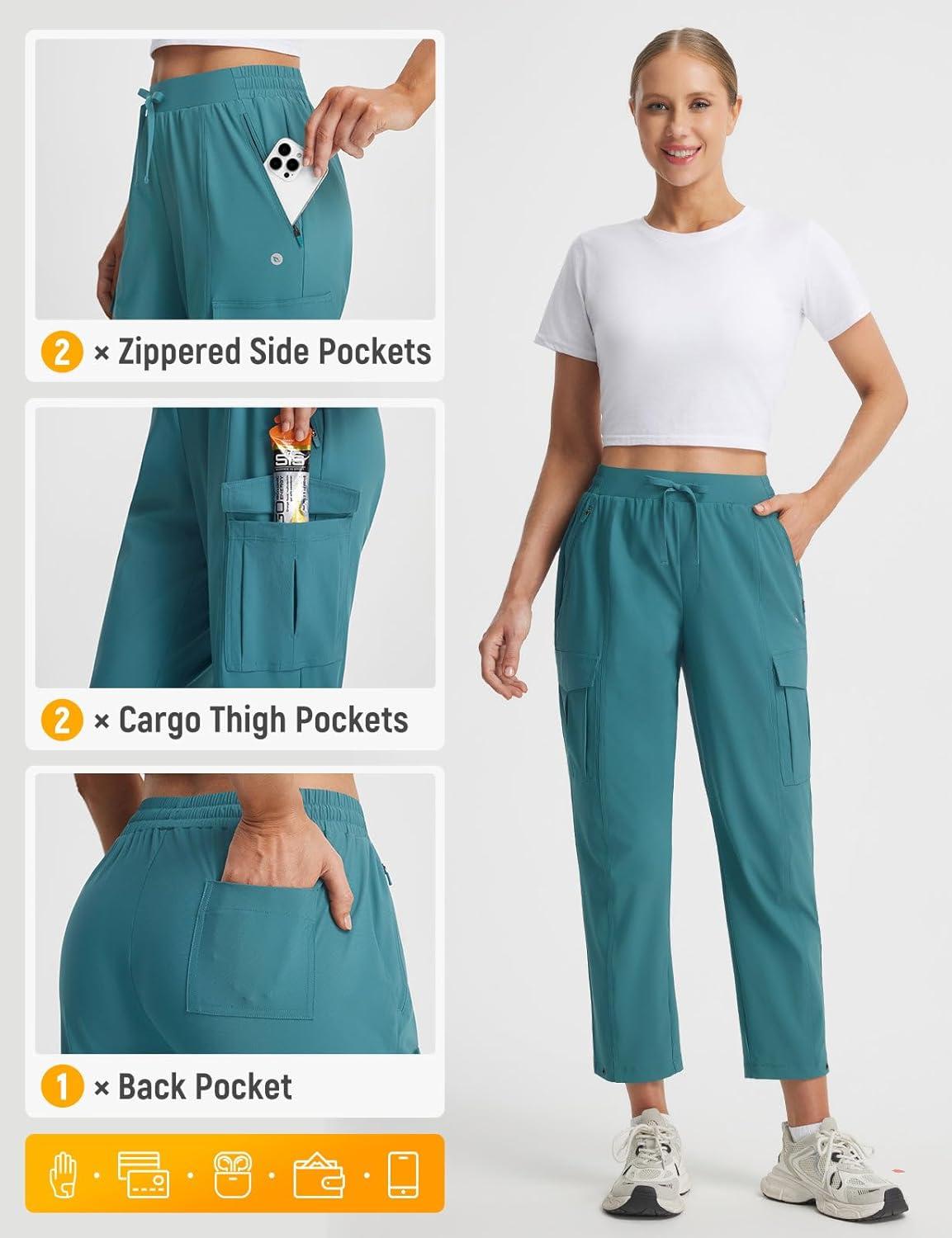 imagebaleaf Womens 26 Travel Pants with Zipper Pockets Petite Ankle Slacks Lightweight Stretch Quick Dry Cargo Summer CoolDark Green