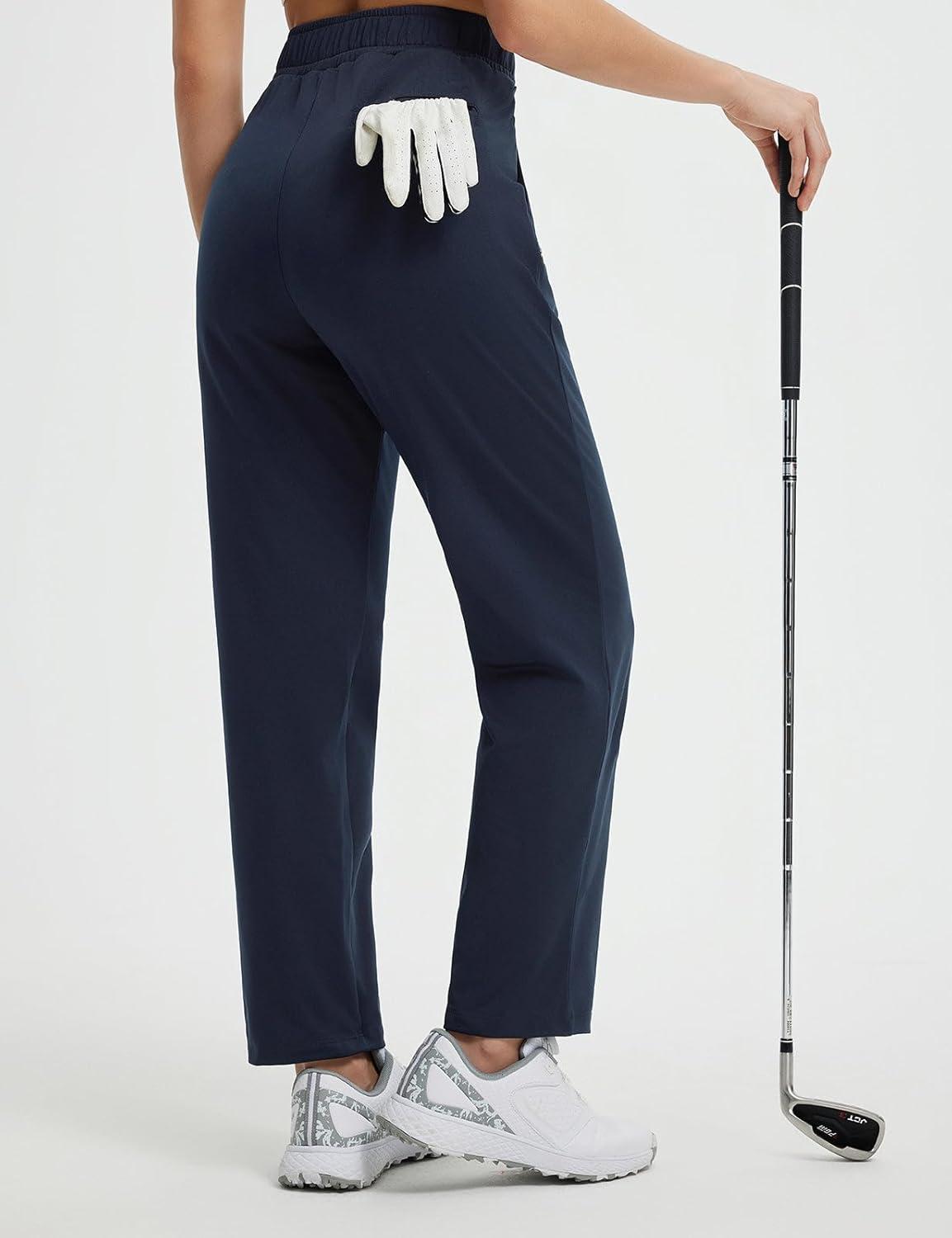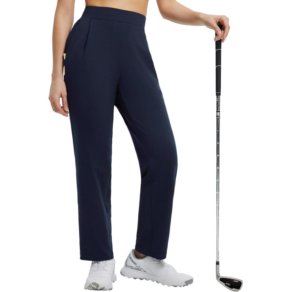 baleaf Women’s 27” Fleece Lined Pants Golf Winter Pockets High Waisted Thermal Cold Travel Work(Navy Blue)