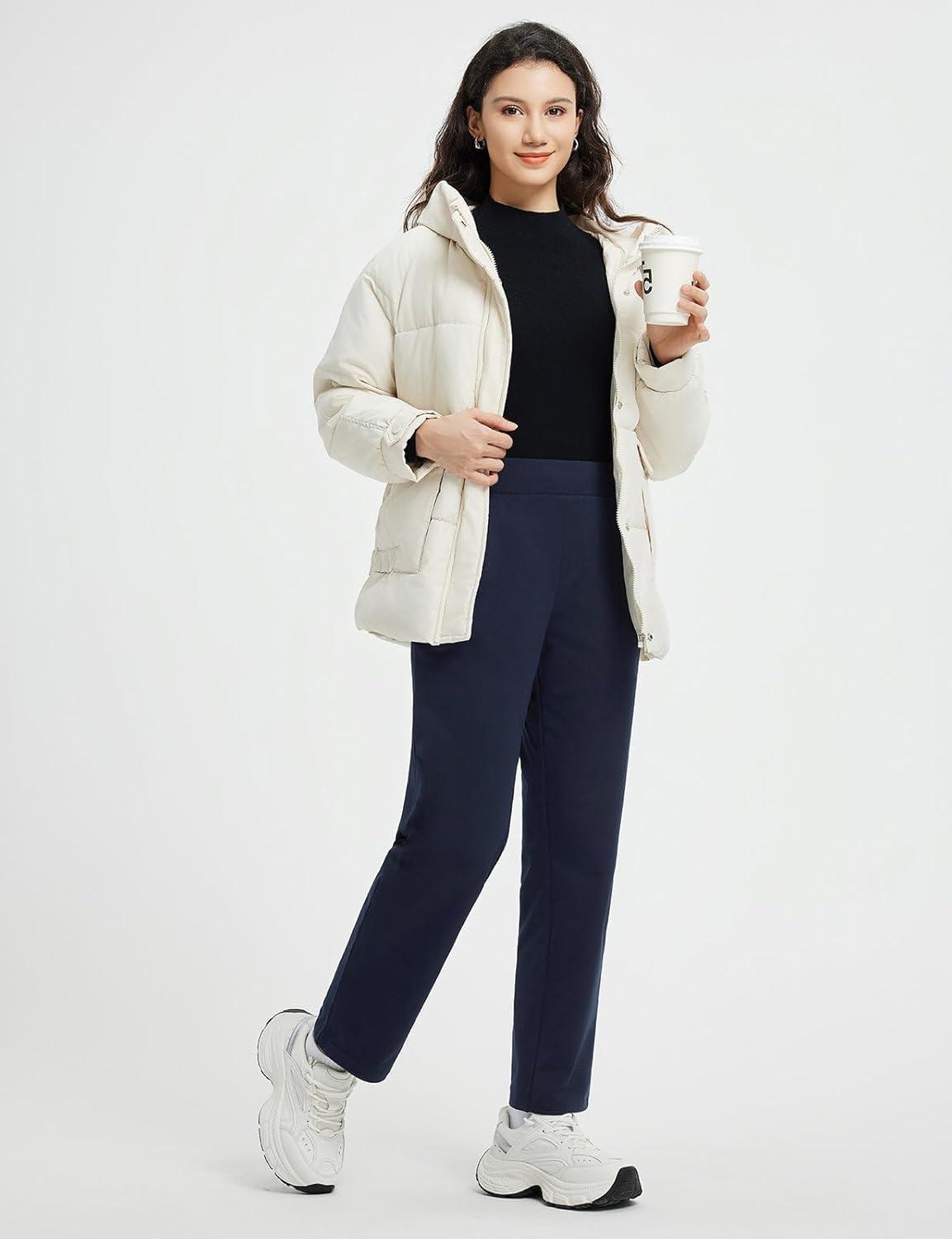 imagebaleaf Womens 27 Fleece Lined Pants Golf Winter Pockets High Waisted Thermal Cold Travel WorkNavy Blue