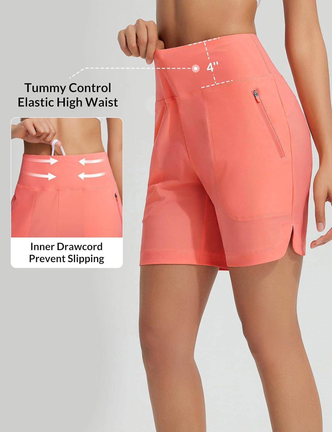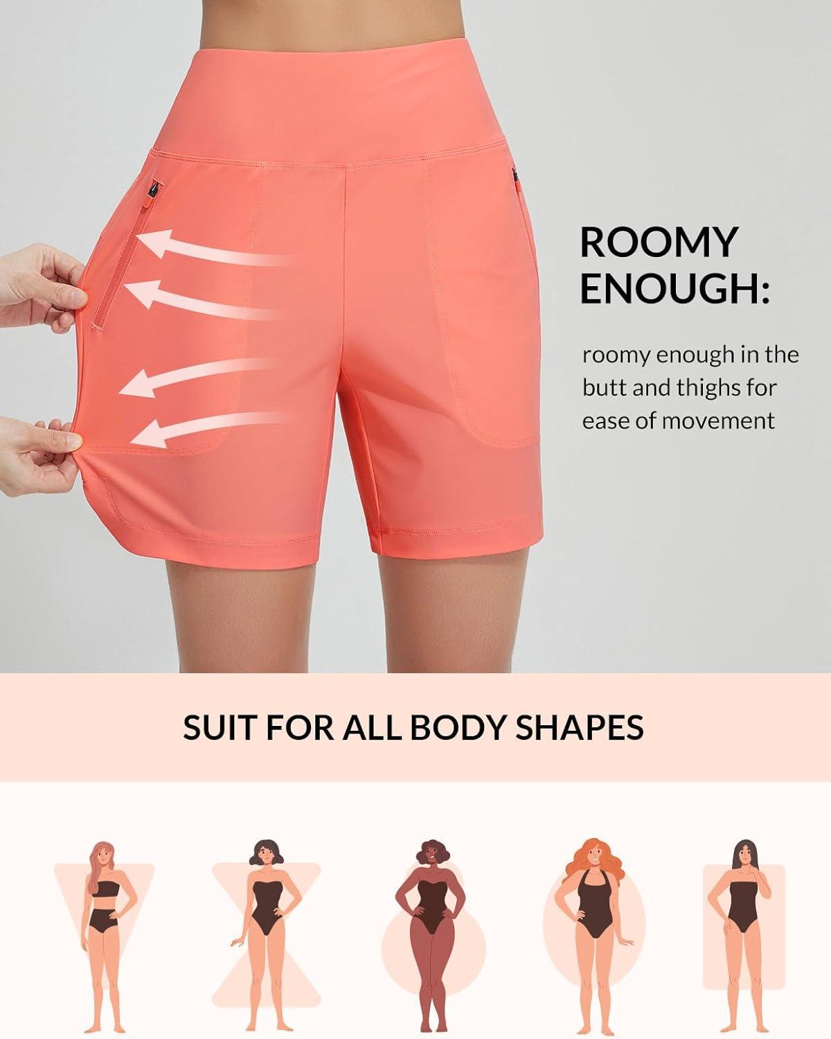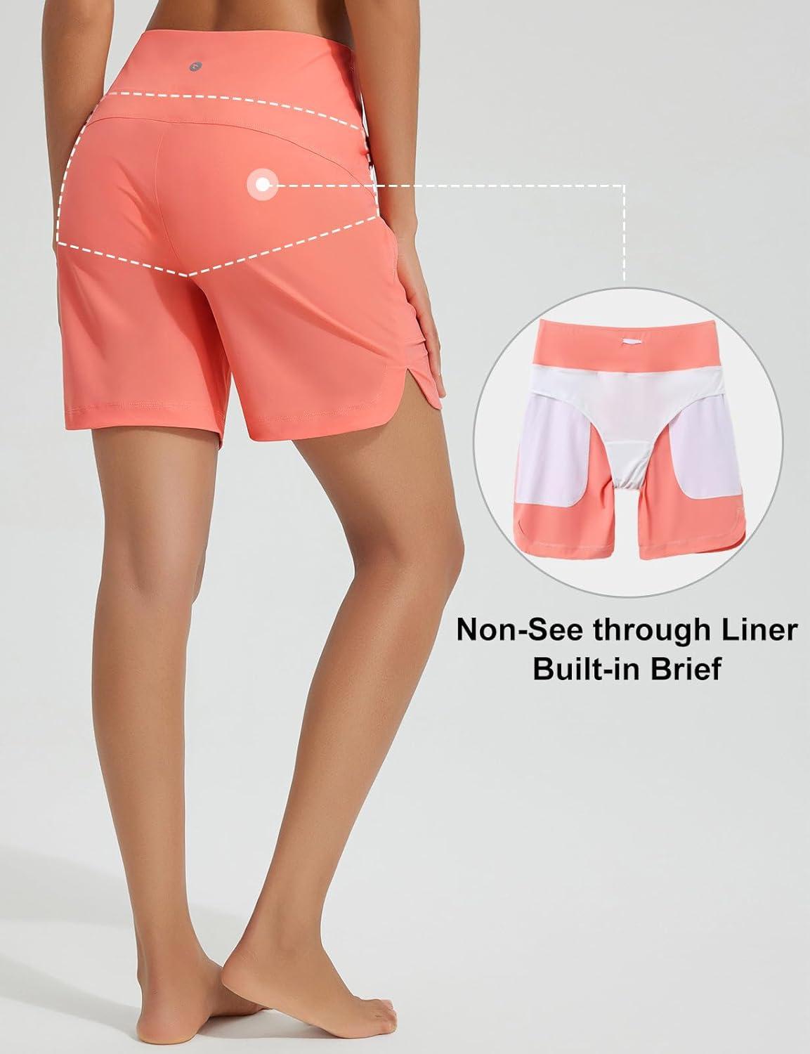 baleaf Women’s 3″/5″/7″/9″ High Waisted Swim Board Shorts Quick Dry Swimsuits Bottoms Trunks with Pockets(Pink)