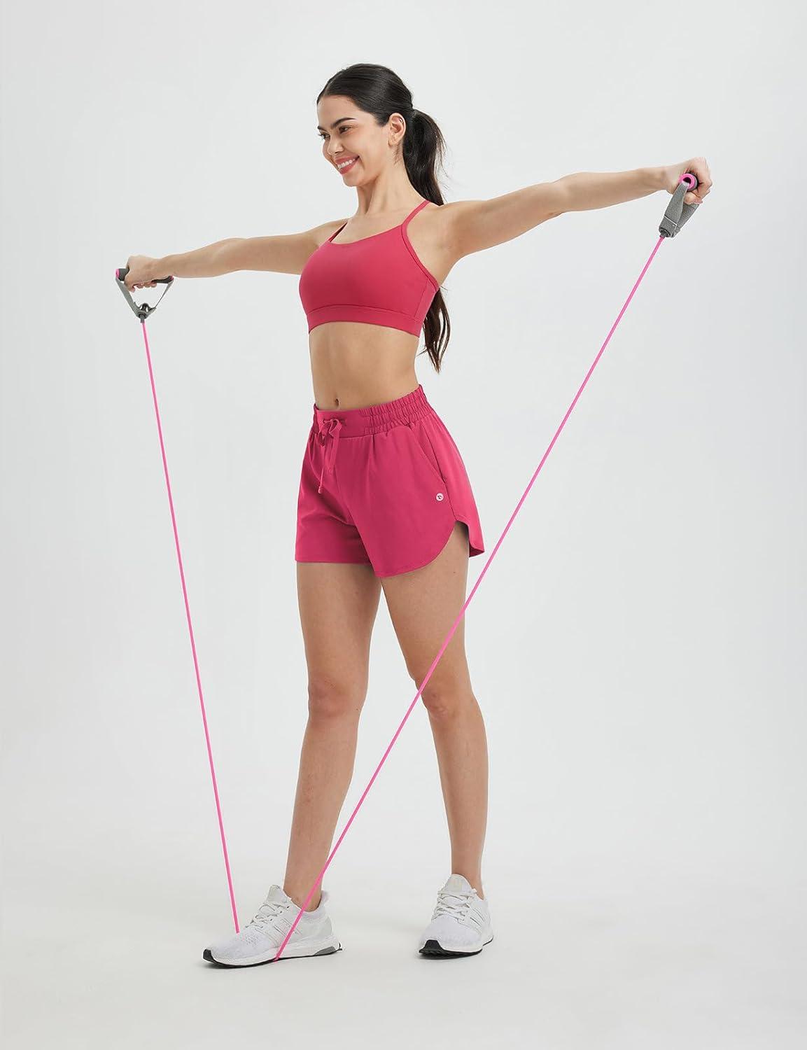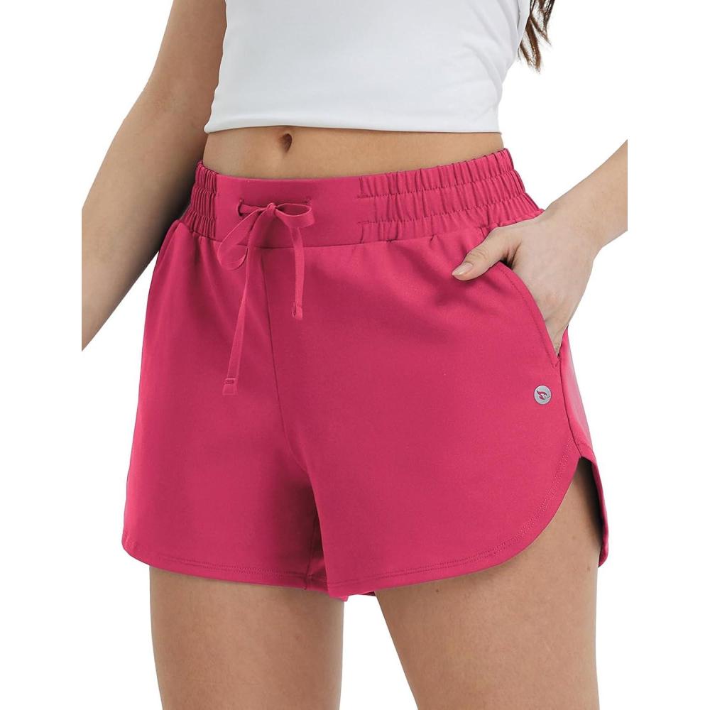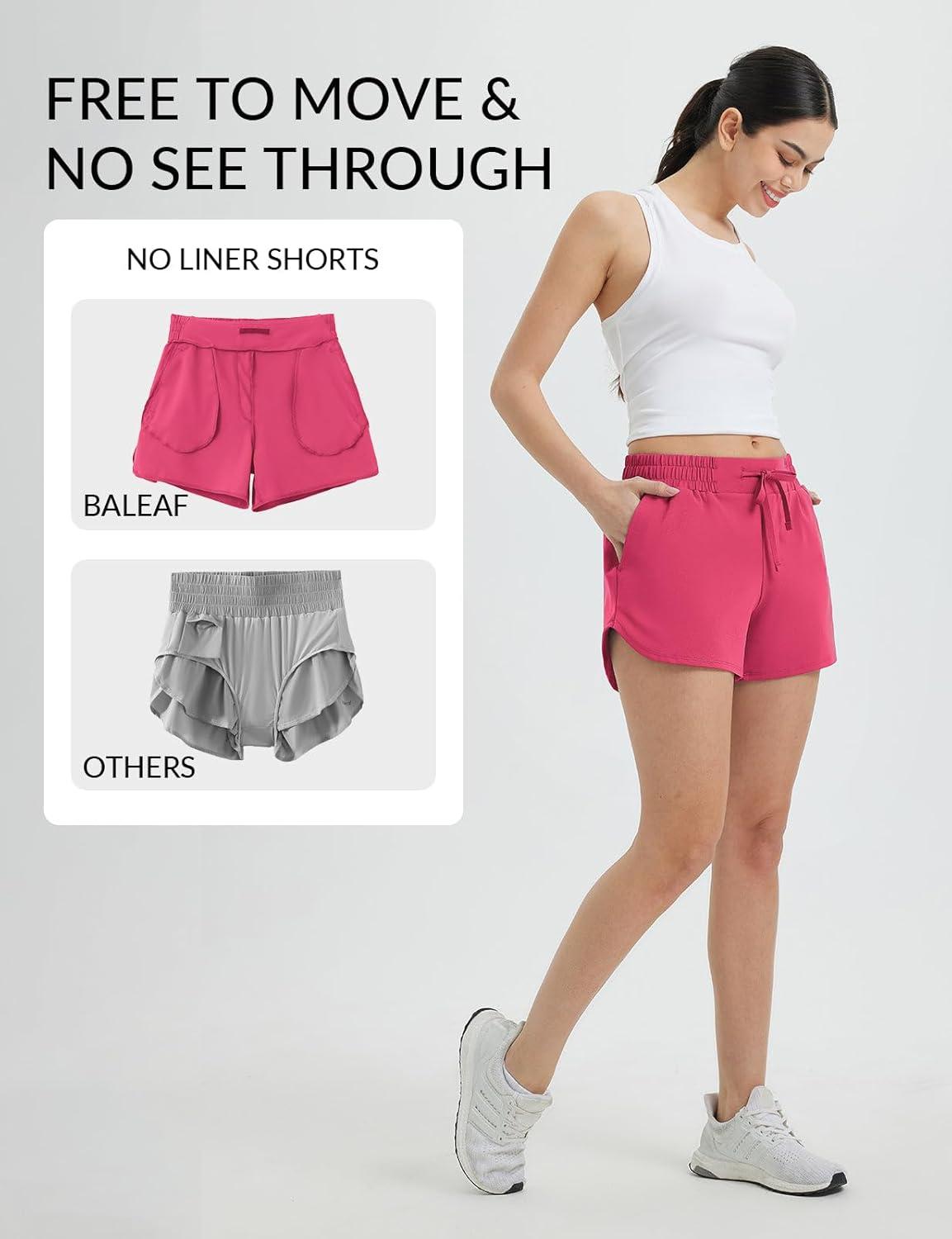 baleaf Women’s 3.5″ Running Shorts Quick Dry with Zipper Pocket Liner Shorts Gym Workout(Rose Red)