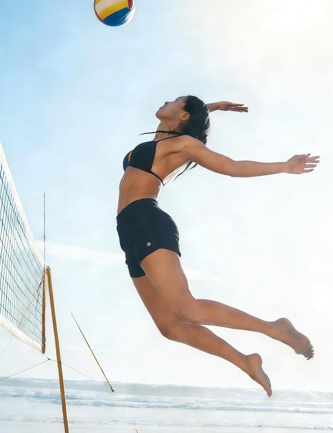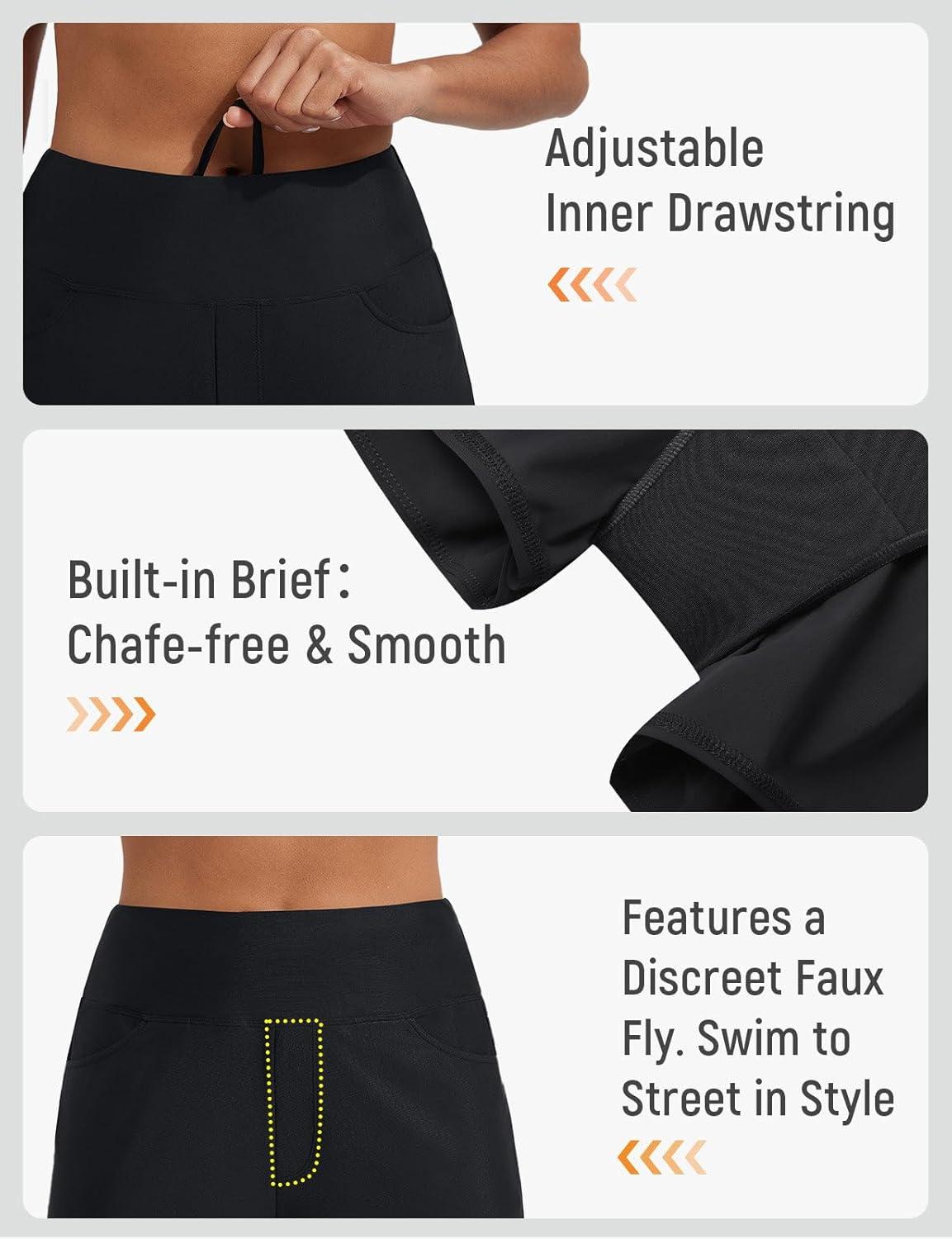 imageBALEAF Womens 3 Swim Board Shorts High Waisted Bathing Suit Bottoms for Swimming with Liner Pockets UPF 50Black