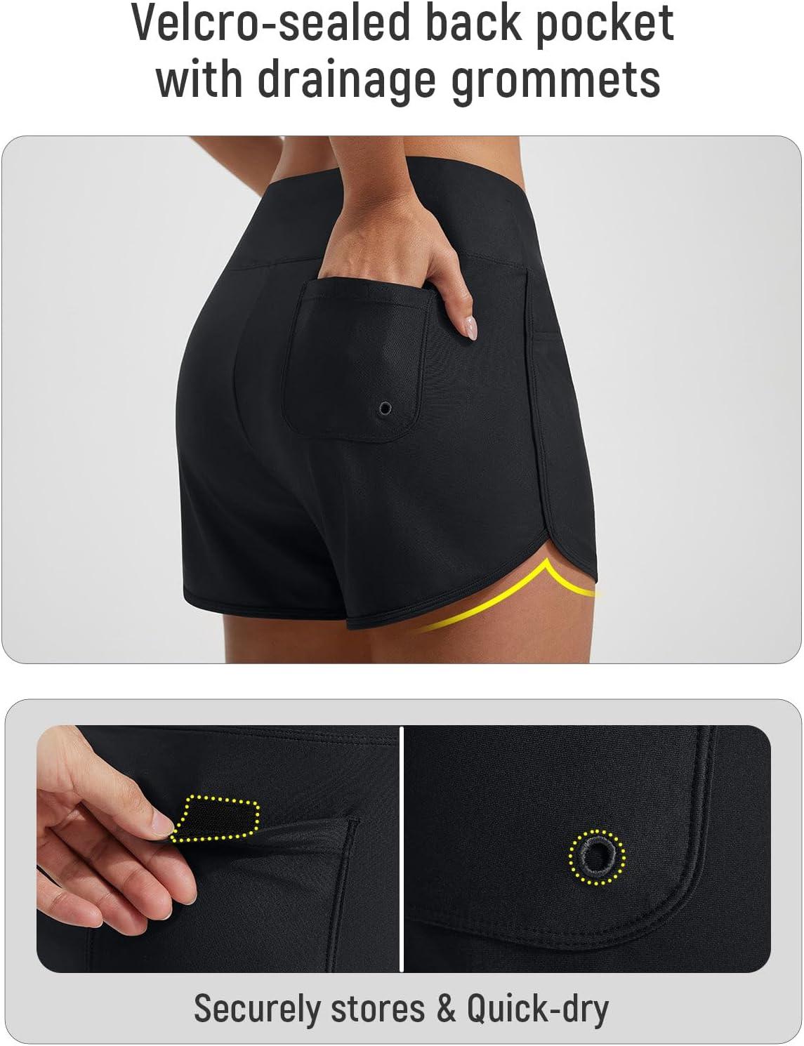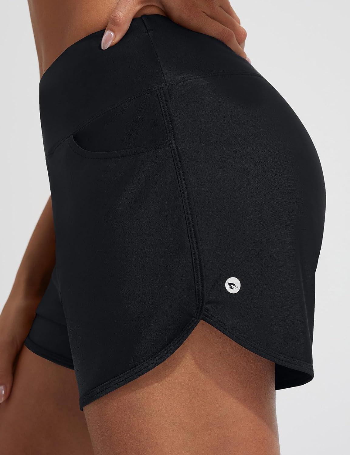 BALEAF Women’s 3″ Swim Board Shorts High Waisted Bathing Suit Bottoms for Swimming with Liner Pockets UPF 50+(Black)