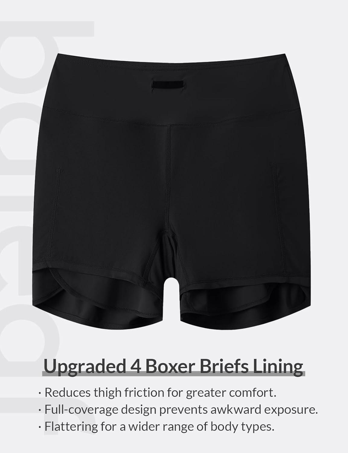 imagebaleaf Womens 5quot Swim Shorts High Waisted 2 in 1 Board Shorts Quick Dry Swimming Bottom with Pockets UPF 50Black