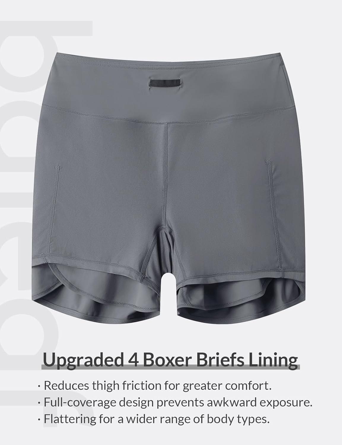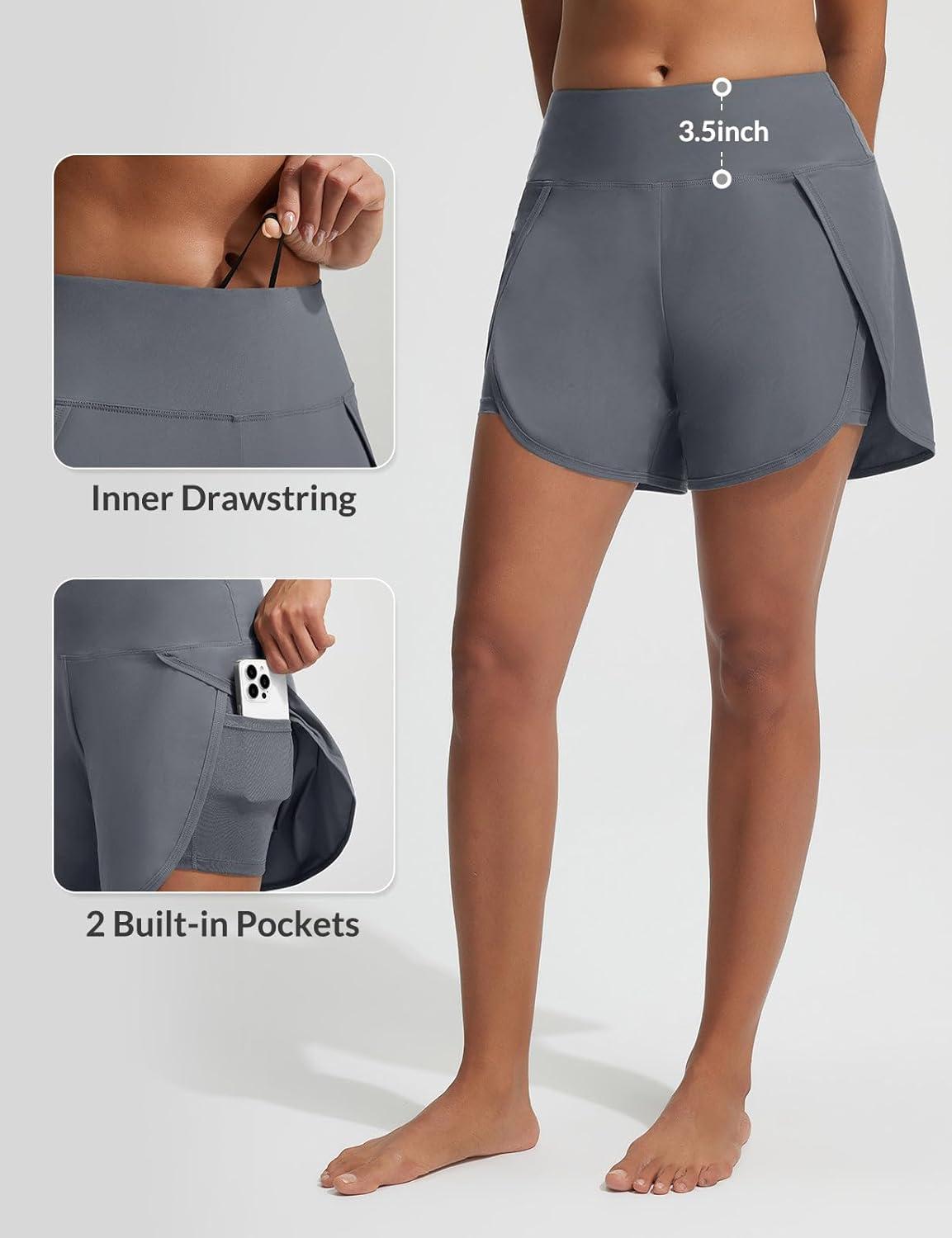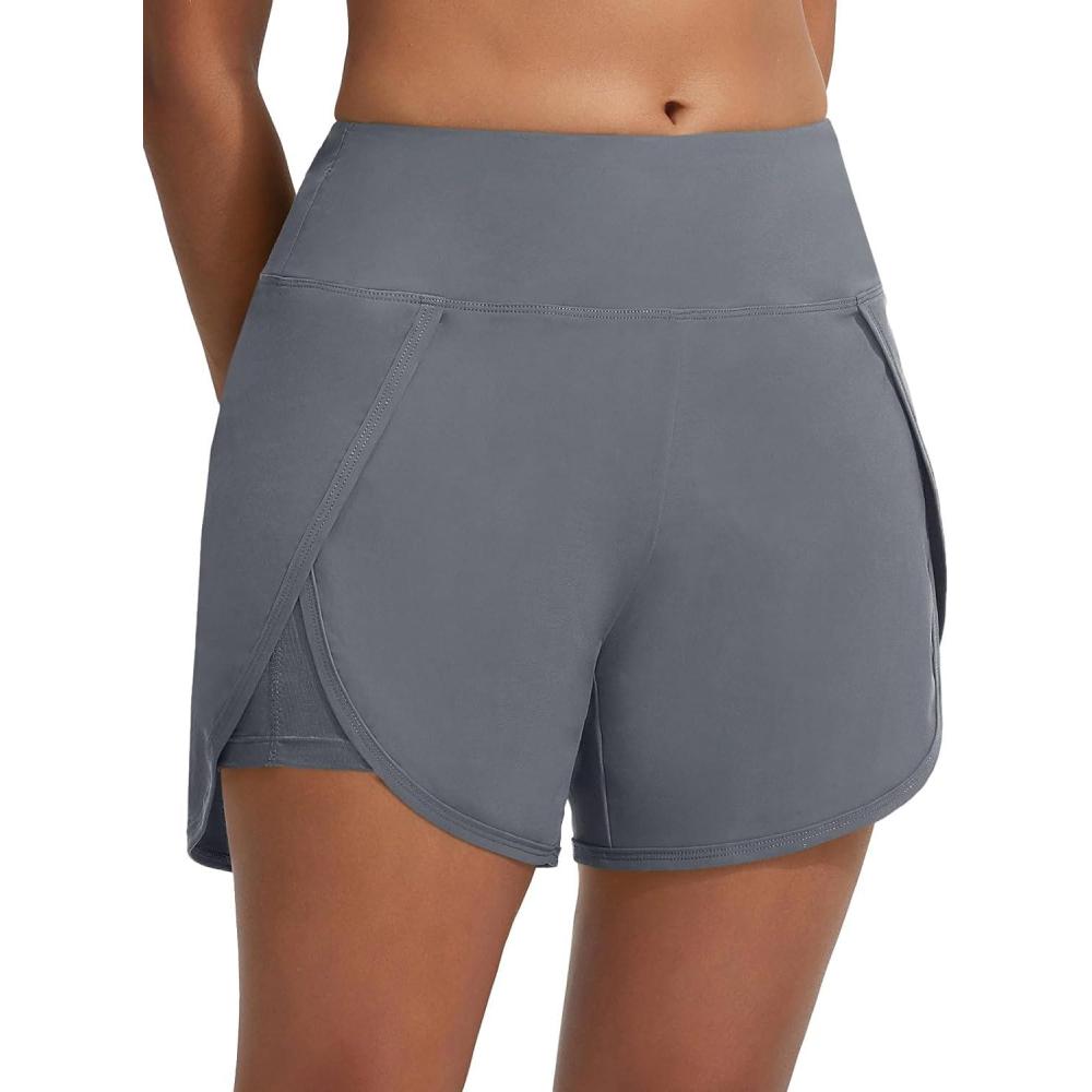 imagebaleaf Womens 5quot Swim Shorts High Waisted 2 in 1 Board Shorts Quick Dry Swimming Bottom with Pockets UPF 50Dark Gray