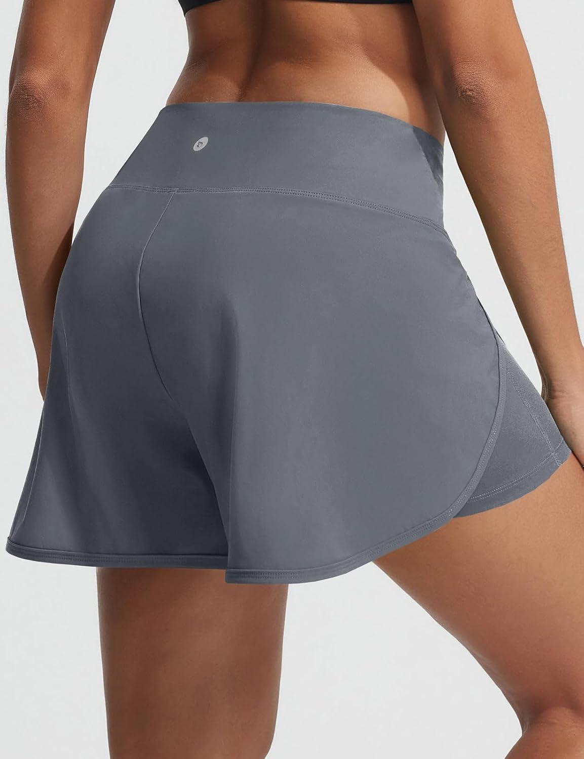 baleaf Women’s 5″ Swim Shorts High Waisted 2 in 1 Board Shorts Quick Dry Swimming Bottom with Pockets UPF 50+(Dark Gray)