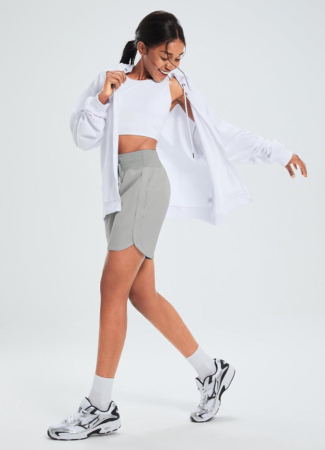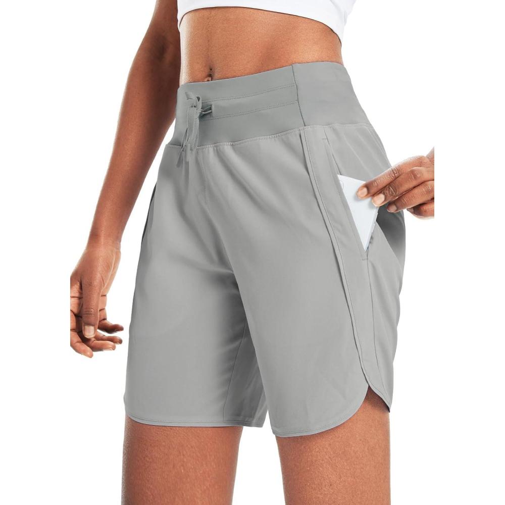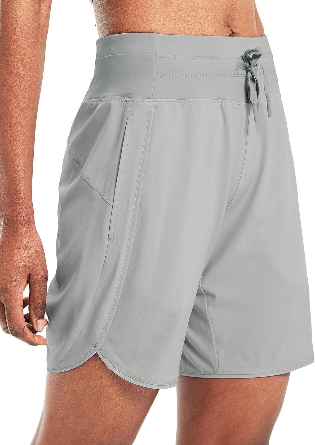 imagebaleaf Womens 7 Athletic Long Running Shorts Workout Gym Quick Dry Hiking Shorts High Waisted Zipper PocketGrey