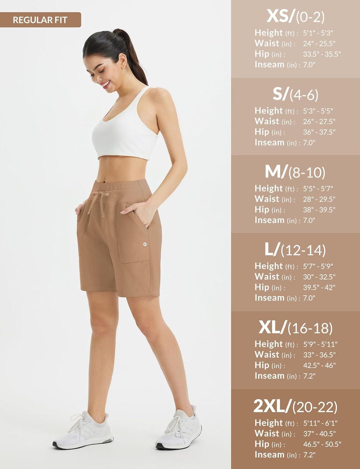 imagebaleaf Womens 7quot Athletic Running Shorts Long Workout Shorts High Waisted Quick Dry 4 Zipper Pockets UPF50Brown