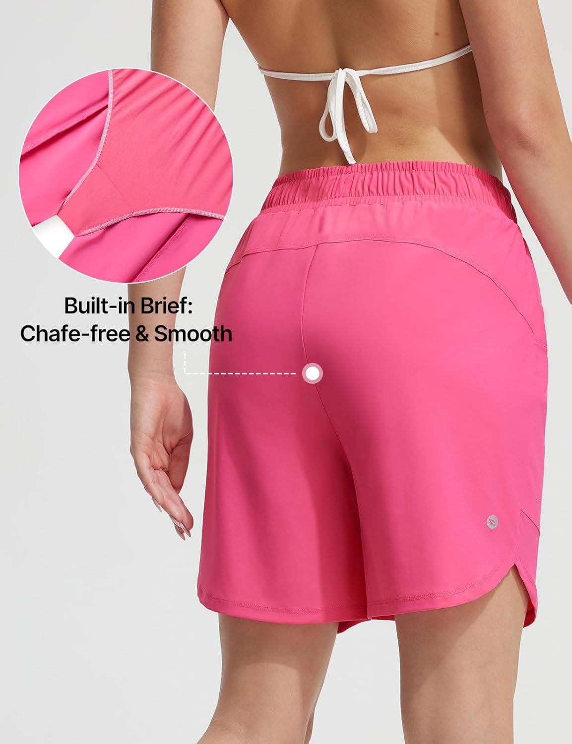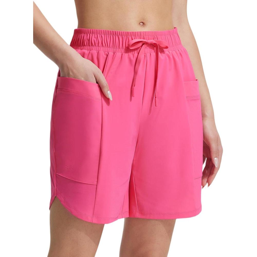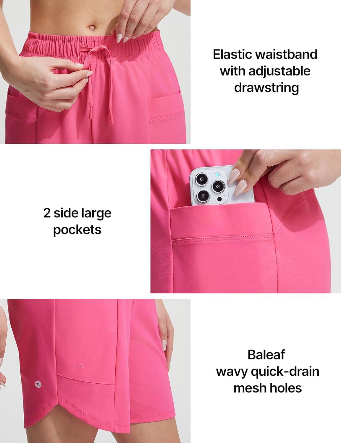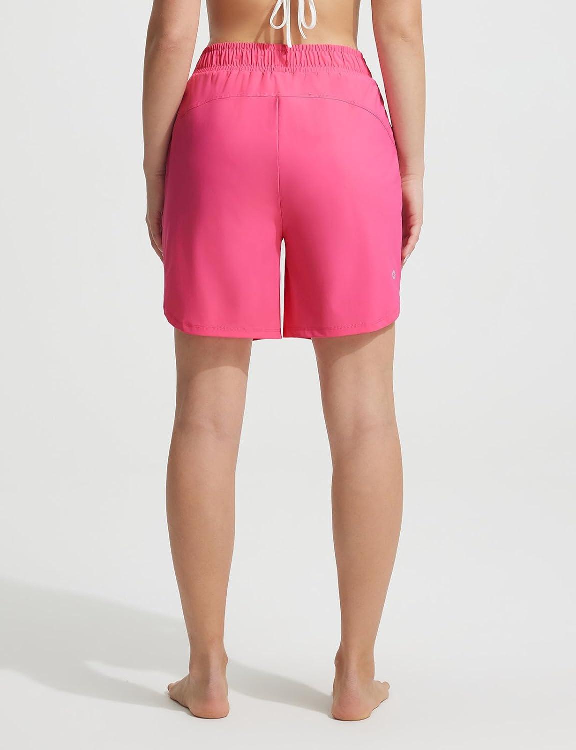 baleaf Women’s 7” Long Board Shorts High Waisted Swim Shorts Modest Swimsuits with Pockets Quick Dry UPF50+(Pink)