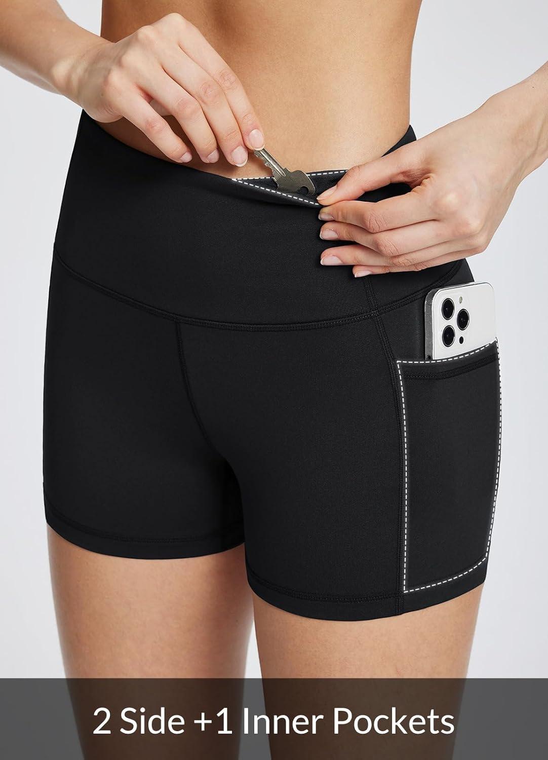 imagebaleaf Womens 8 5 3 Biker Shorts High Waist Yoga Workout Gym Running Volleyball Spandex Shorts with PocketsBlackclassic