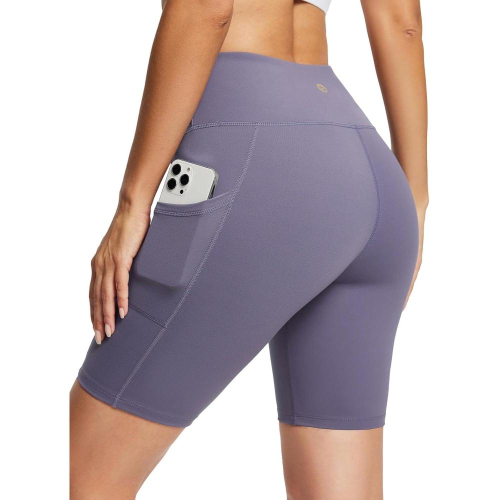 baleaf Women’s 8″/ 5″/ 3″ Biker Shorts High Waist Yoga Workout Gym Running Volleyball Spandex Shorts with Pockets(Light Purple-softer)