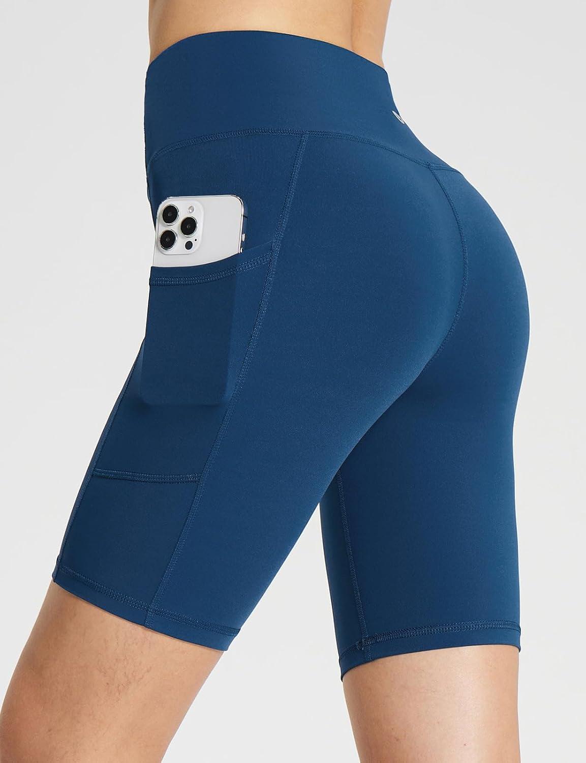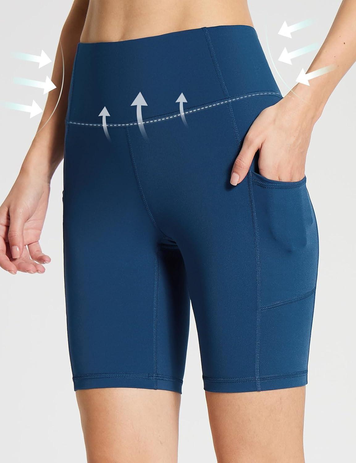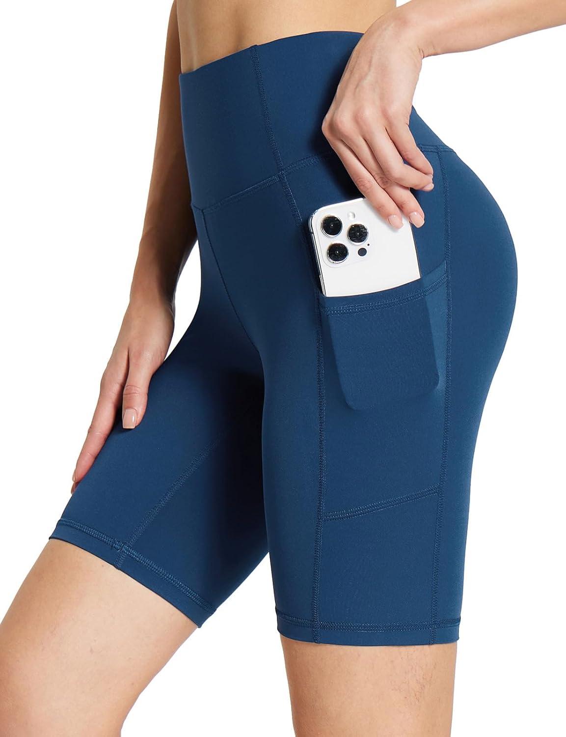 baleaf Women’s 8″/ 5″/ 3″ Biker Shorts High Waist Yoga Workout Gym Running Volleyball Spandex Shorts with Pockets(Navy Blue-stretchier-lycra)