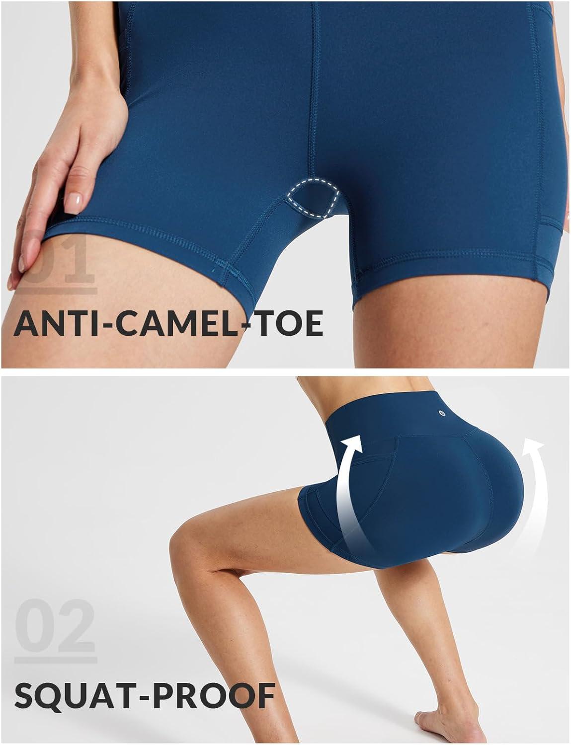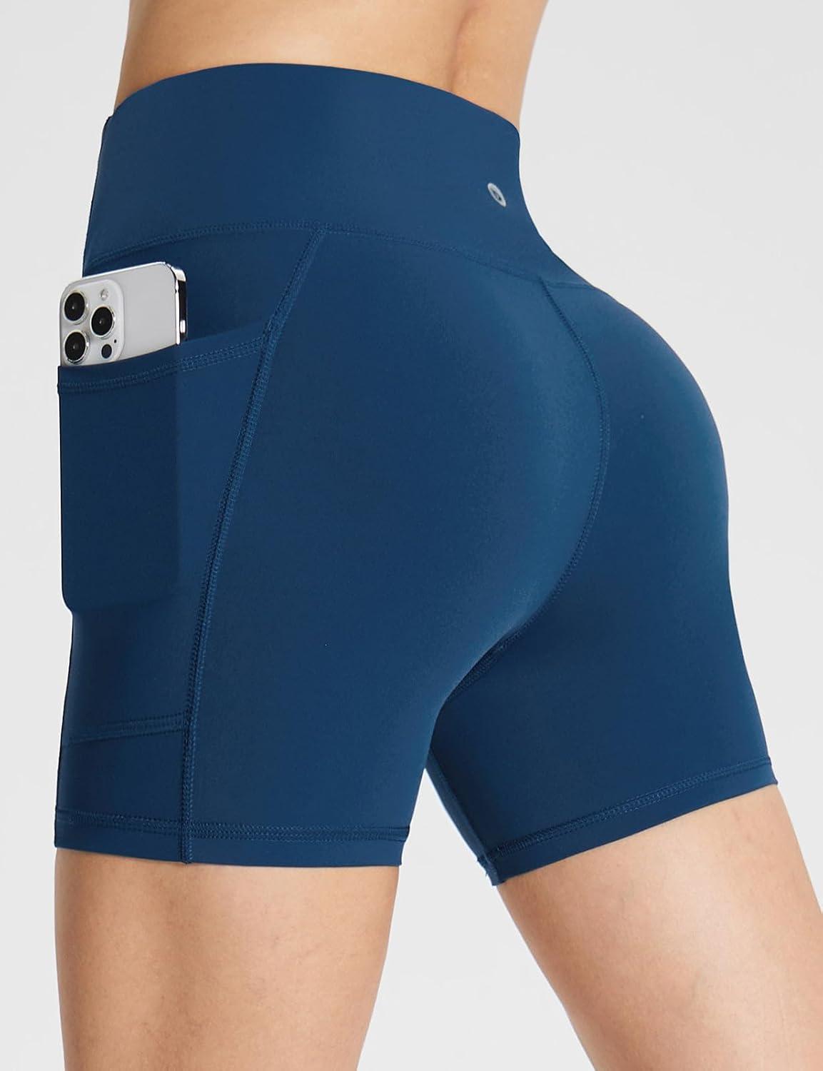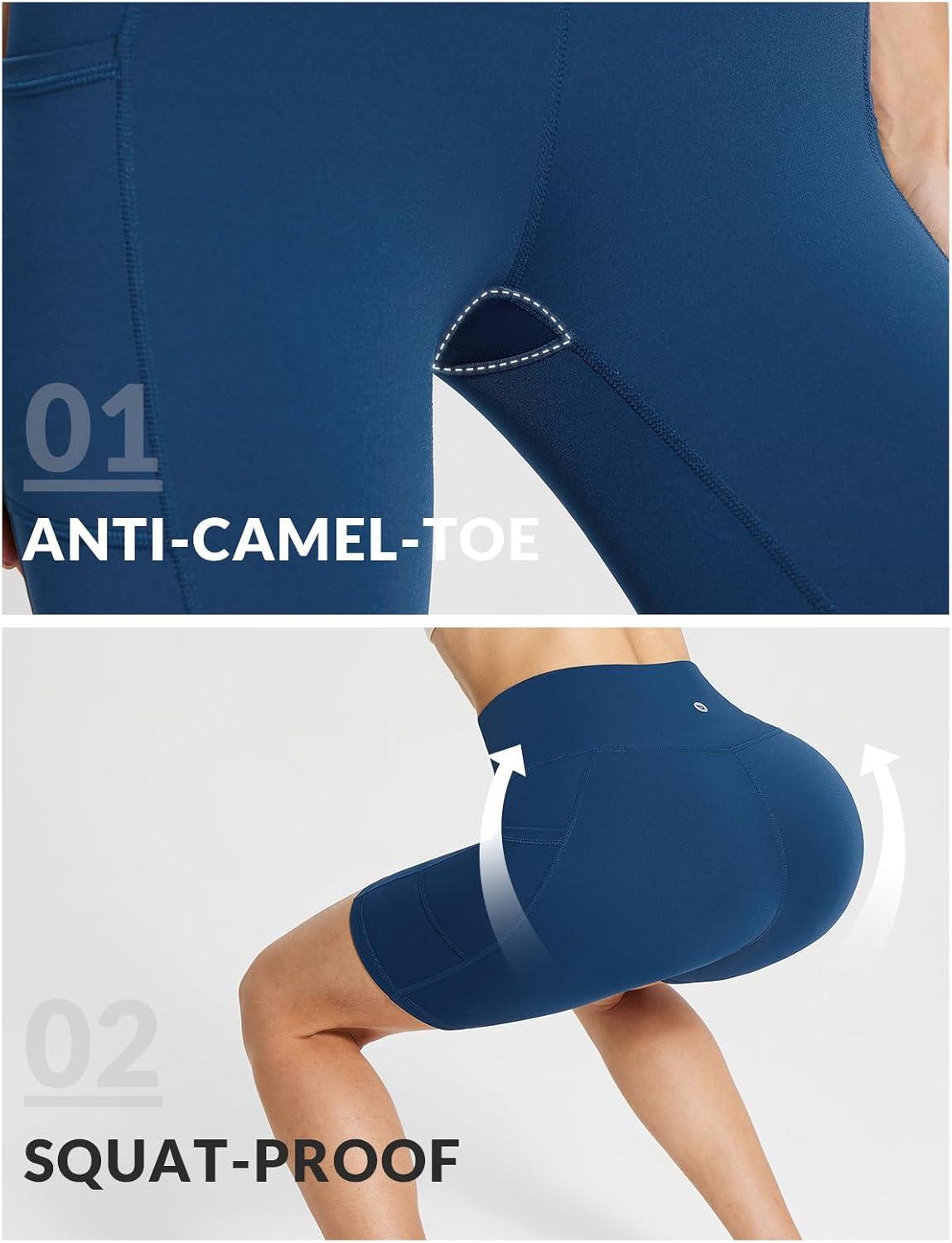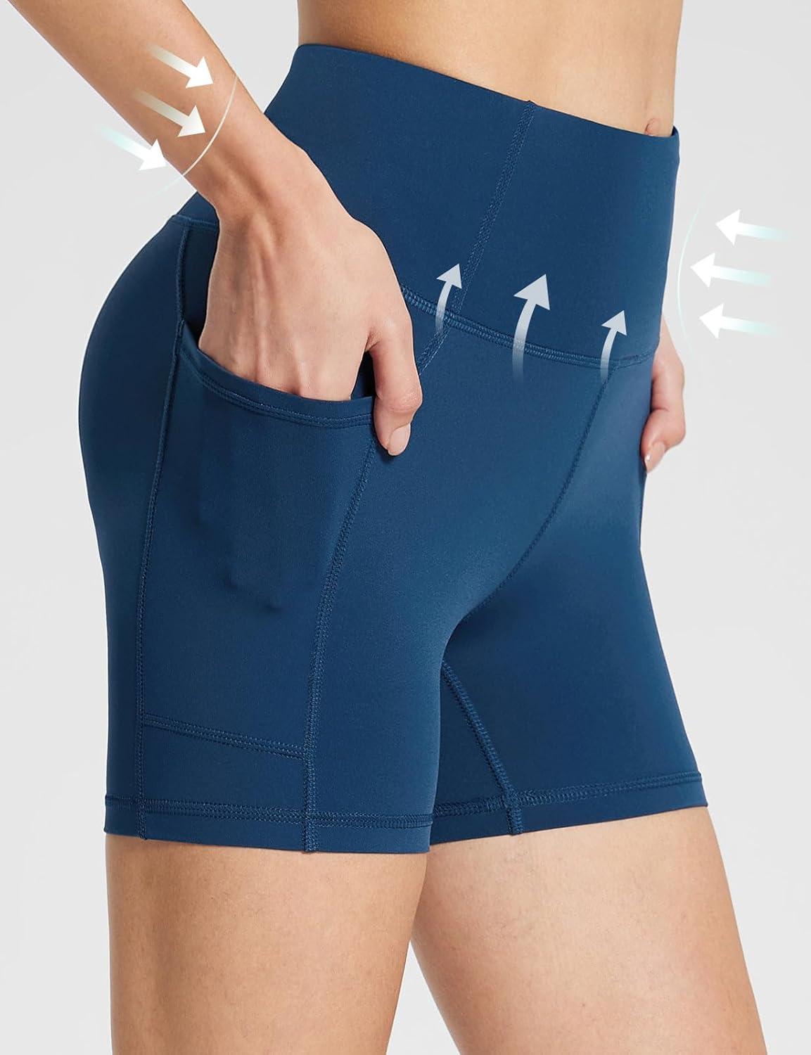 baleaf Women’s 8″/ 5″/ 3″ Biker Shorts High Waist Yoga Workout Gym Running Volleyball Spandex Shorts with Pockets(Navy Blue-stretchier-lycra)