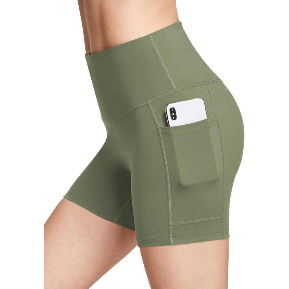 baleaf Women’s 8″/ 5″/ 3″ Biker Shorts High Waist Yoga Workout Gym Running Volleyball Spandex Shorts with Pockets(Navy Green-softer)