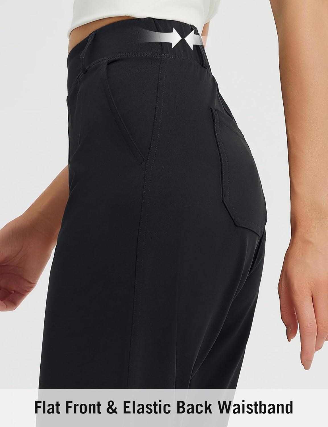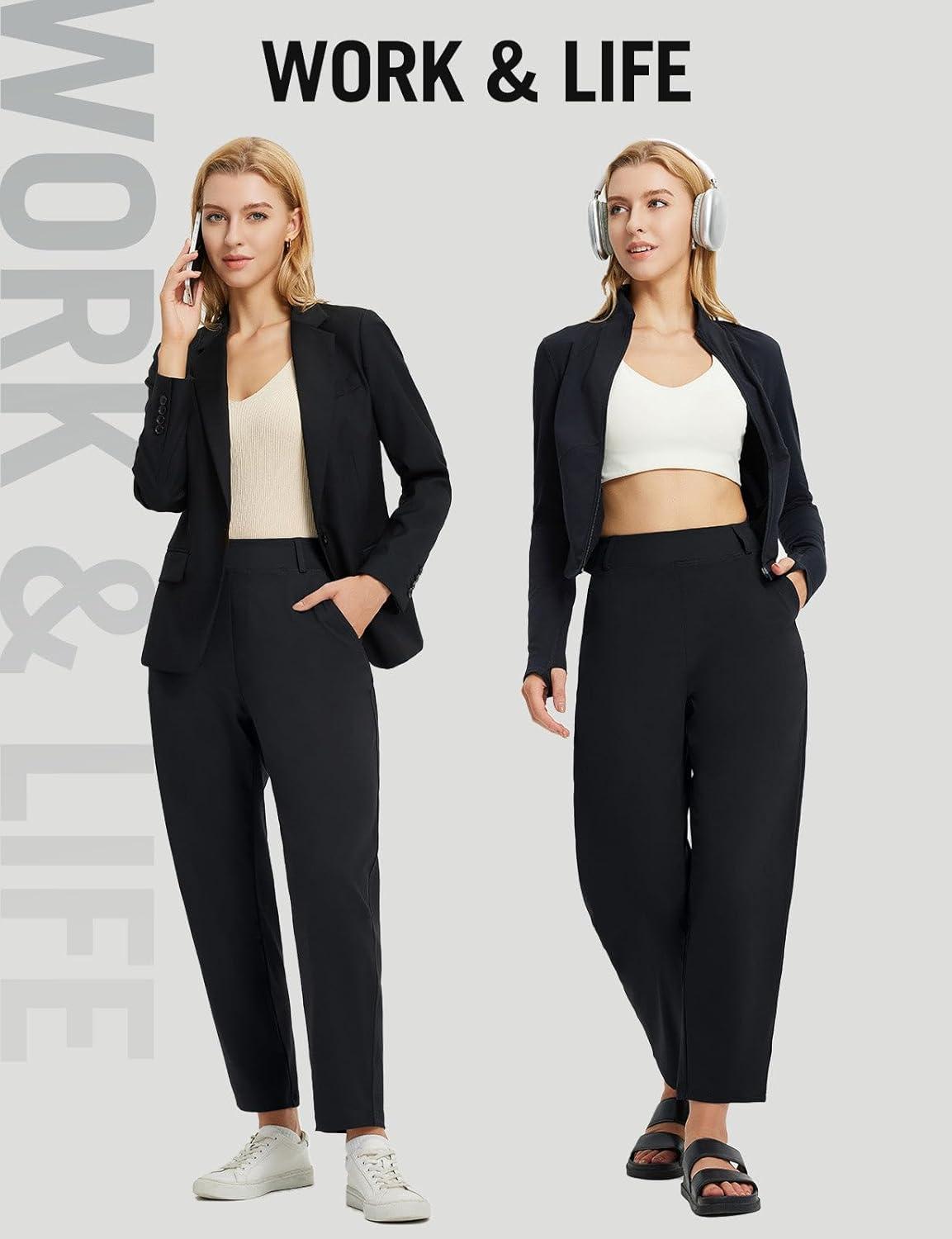 imagebaleaf Womens Ankle Barrel Pants Stretch Travel Pants Petite Work Pants Casual Slacks with PocketsBlack