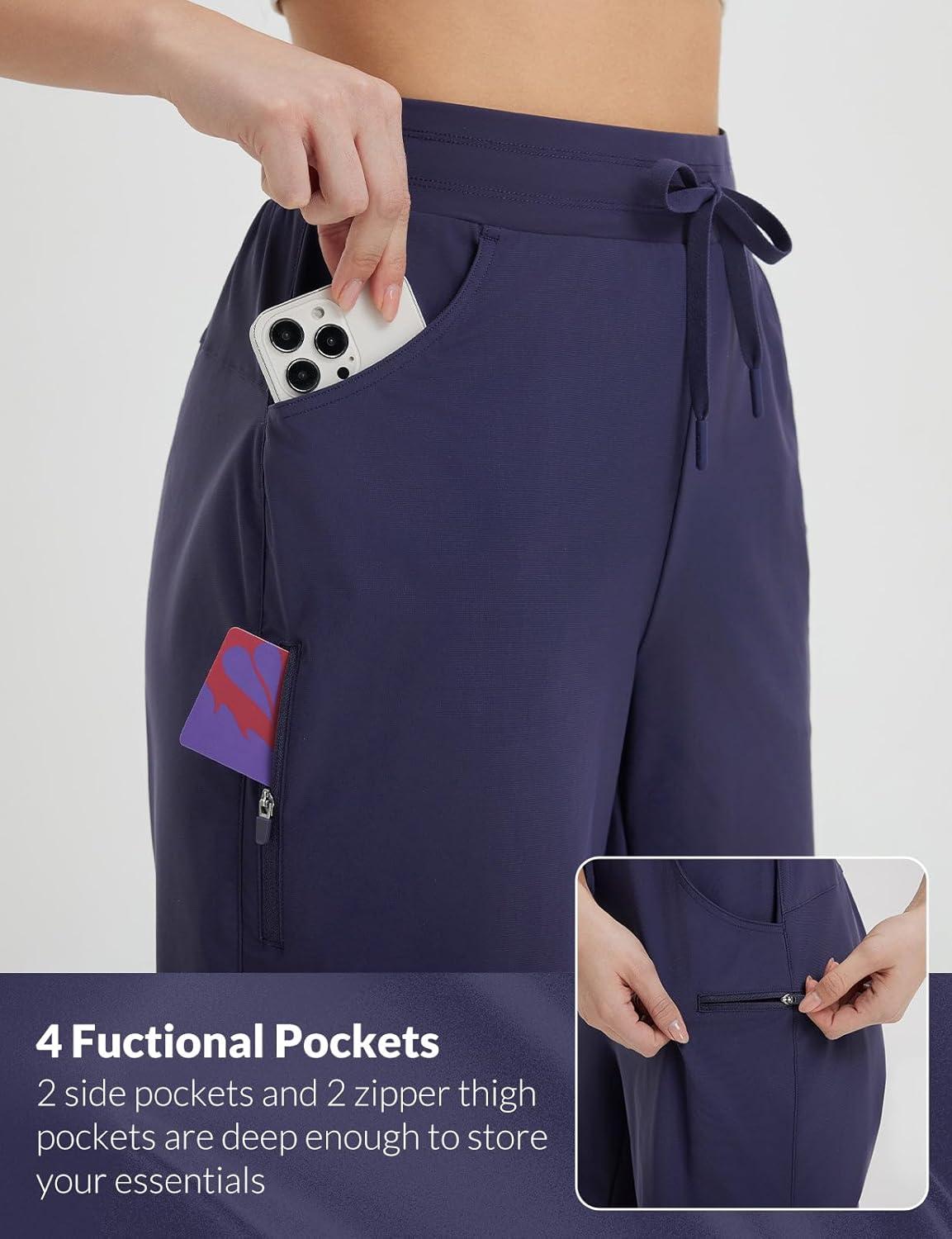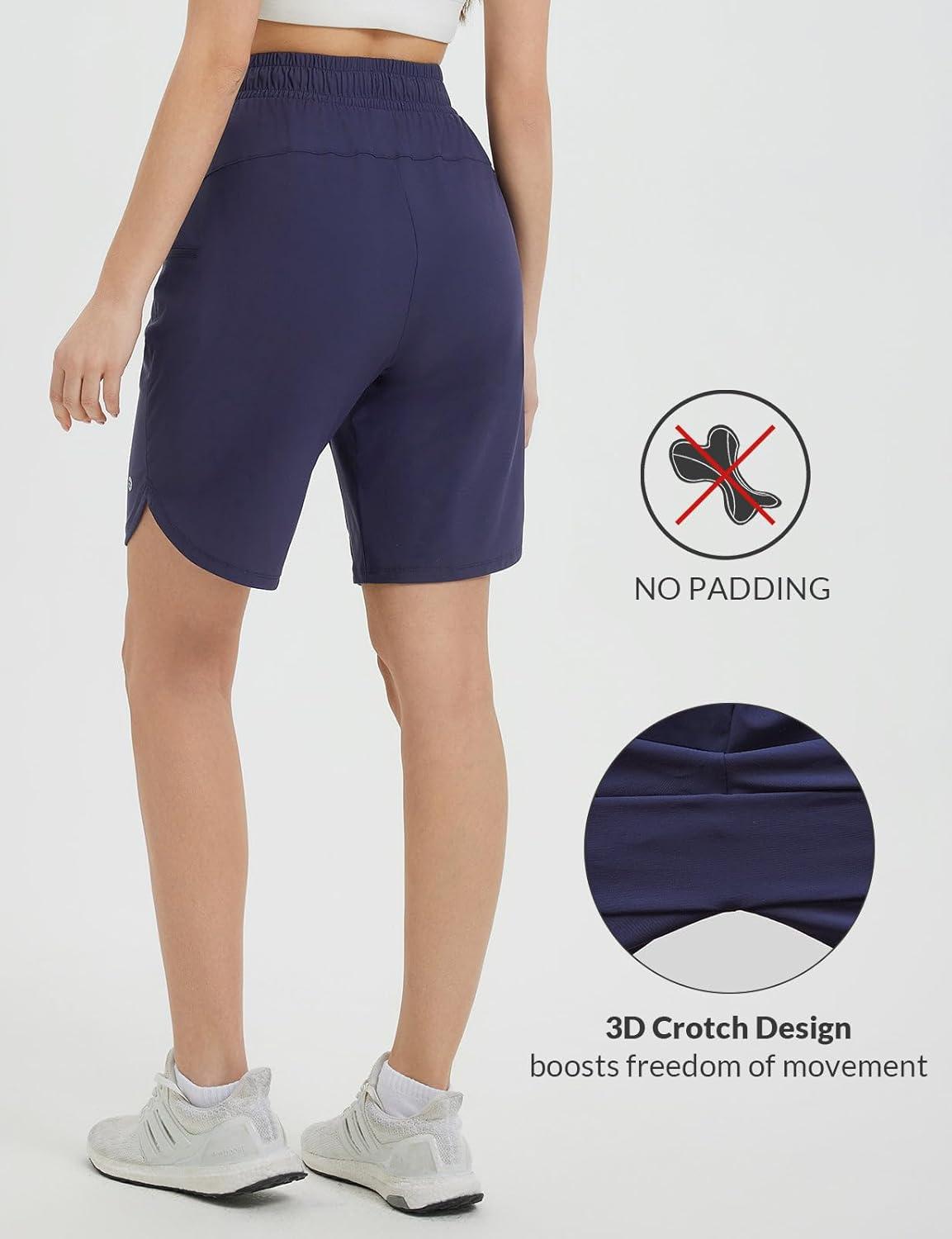 baleaf Women’s Bermuda Long Shorts 9″ Above Knee Length Quick Dry Lightweight Zipper Pockets Casual Summer Athletic UPF 50+(Navy Blue)