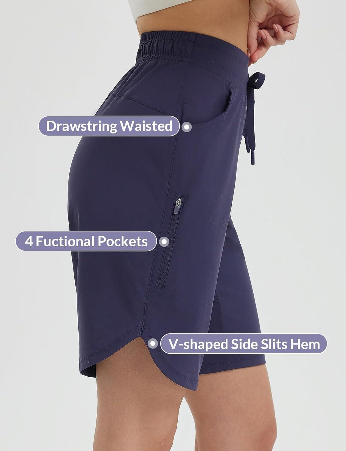 baleaf Women’s Bermuda Long Shorts 9″ Above Knee Length Quick Dry Lightweight Zipper Pockets Casual Summer Athletic UPF 50+(Dark Purple)