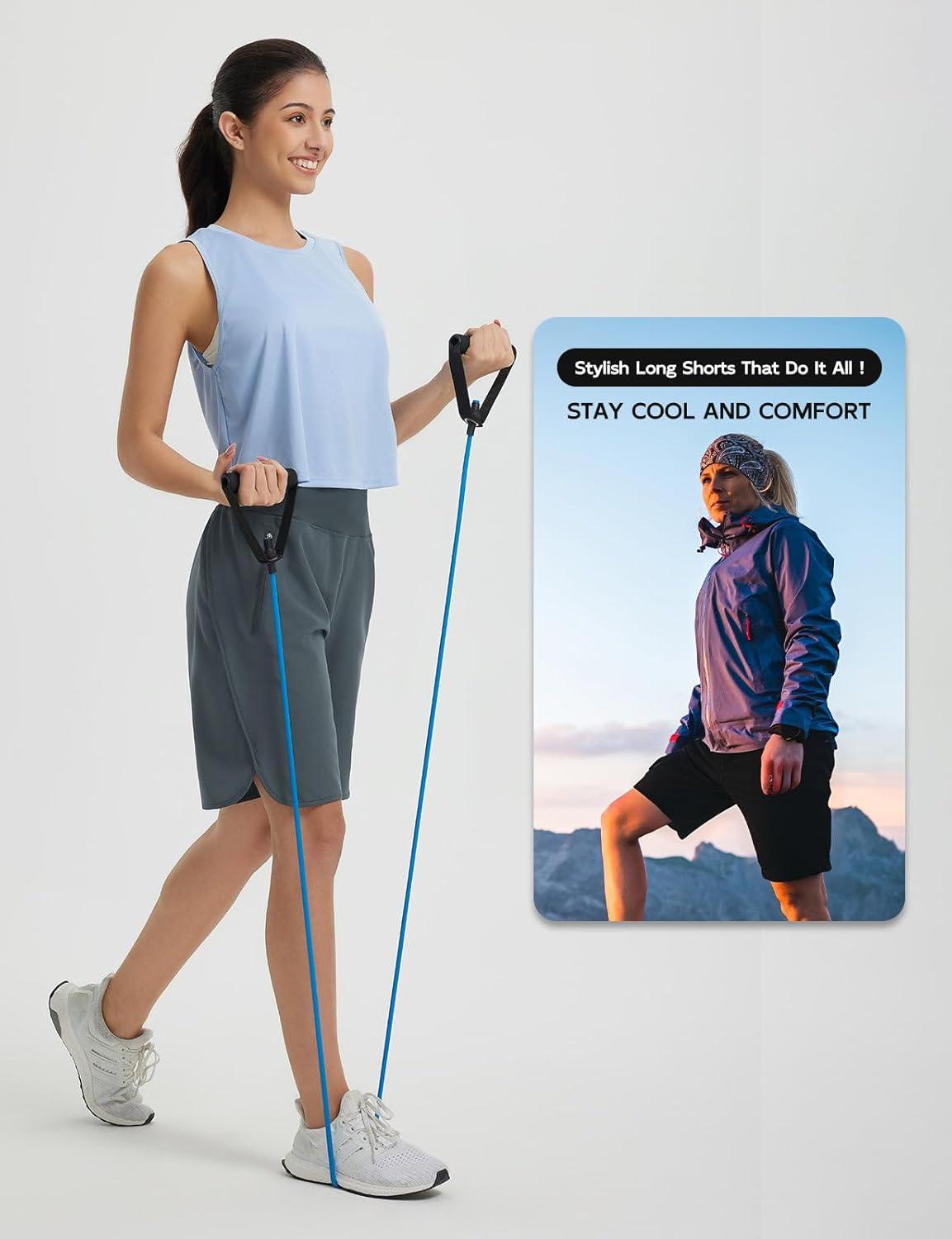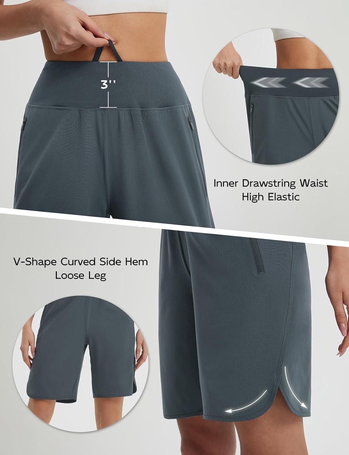 imagebaleaf Womens Bermuda Long Shorts 9quot Knee Length Athletic Running Shorts with Zip Pockets Stretch Loose Summer UPF 50Dark Gray