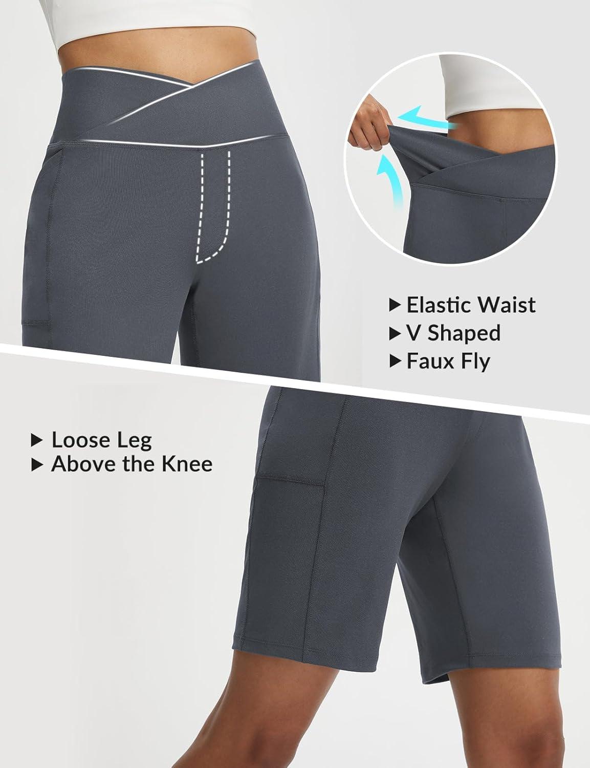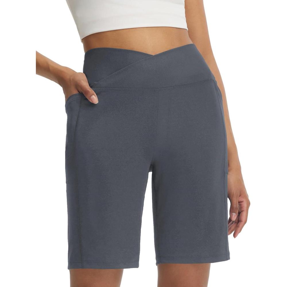BALEAF Women's Bermuda Long Shorts with Pockets 9" Above Knee Length High Waisted Stretch Walking Athletic Dressy Casual(Dark Gray)