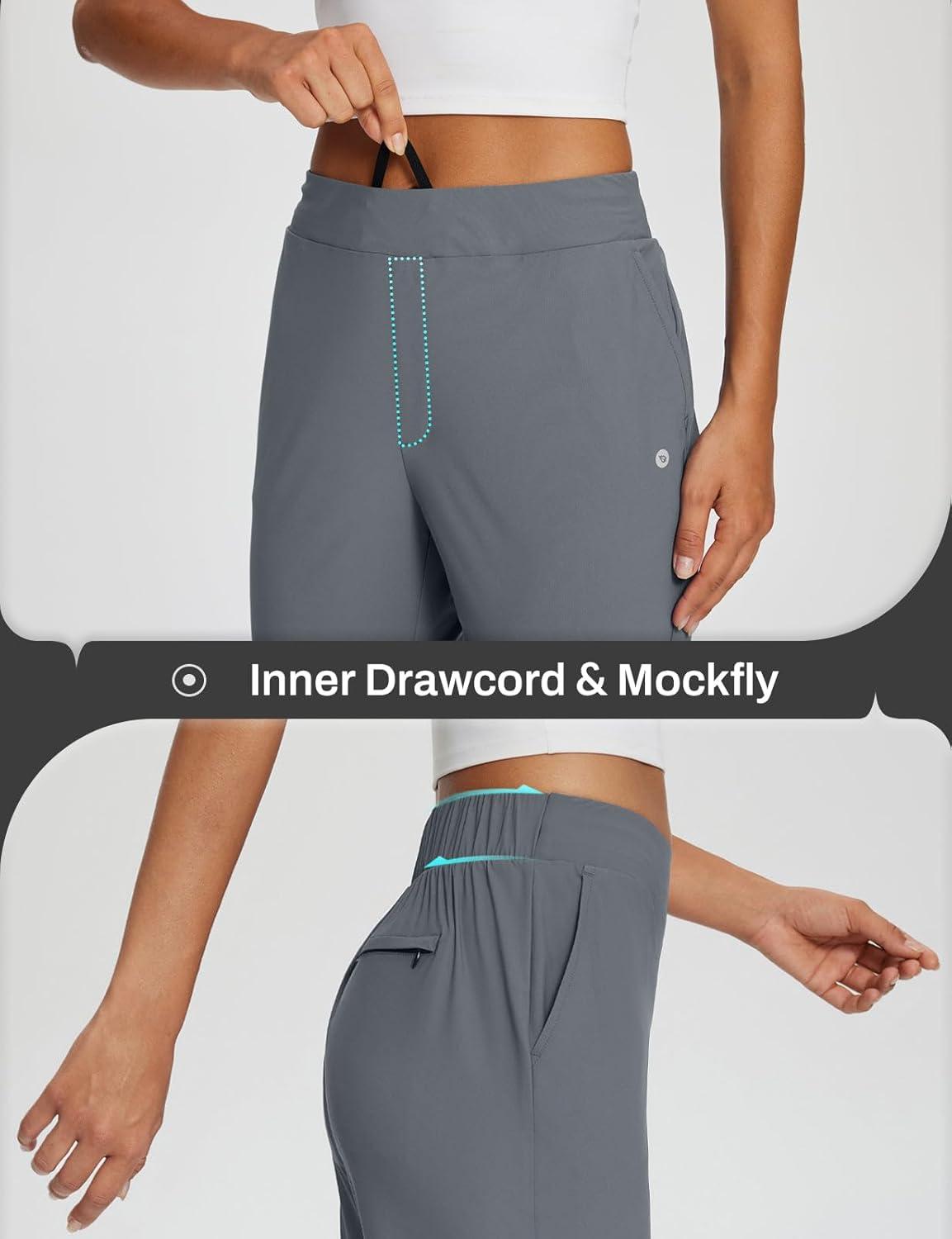 baleaf Womens Business Casual Pants Stretch Travel Pants On Airport with Zipper Pockets Dressy Slacks Golf Work Pull on(Grey)