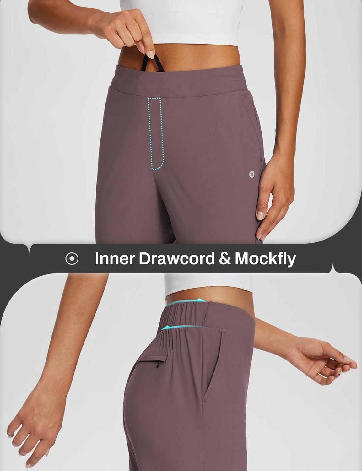 baleaf Womens Business Casual Pants Stretch Travel Pants On Airport with Zipper Pockets Dressy Slacks Golf Work Pull on(Trip Brown)