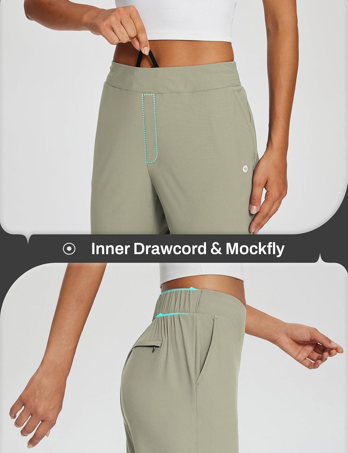 baleaf Womens Business Casual Pants Stretch Travel Pants On Airport with Zipper Pockets Dressy Slacks Golf Work Pull on(Twill)