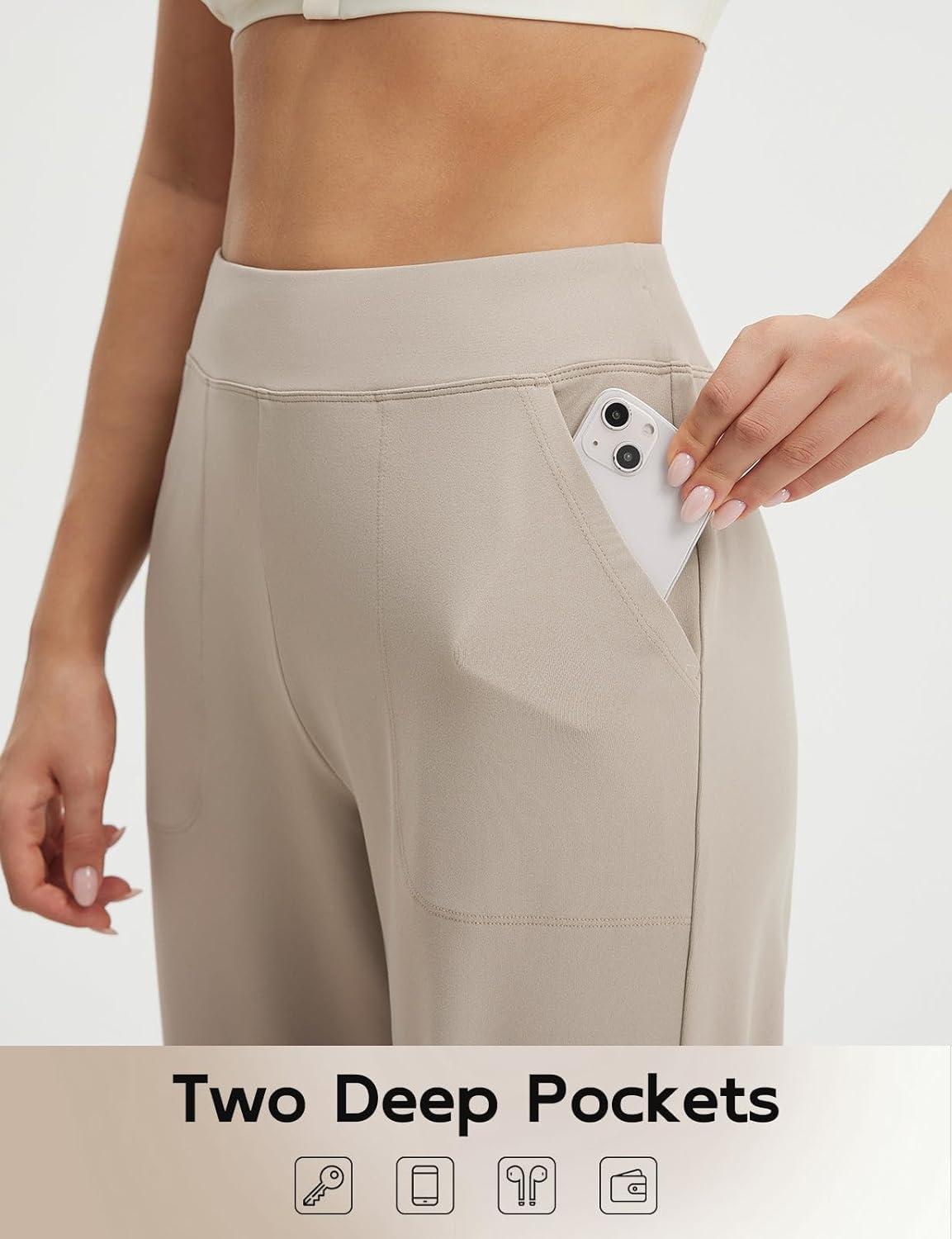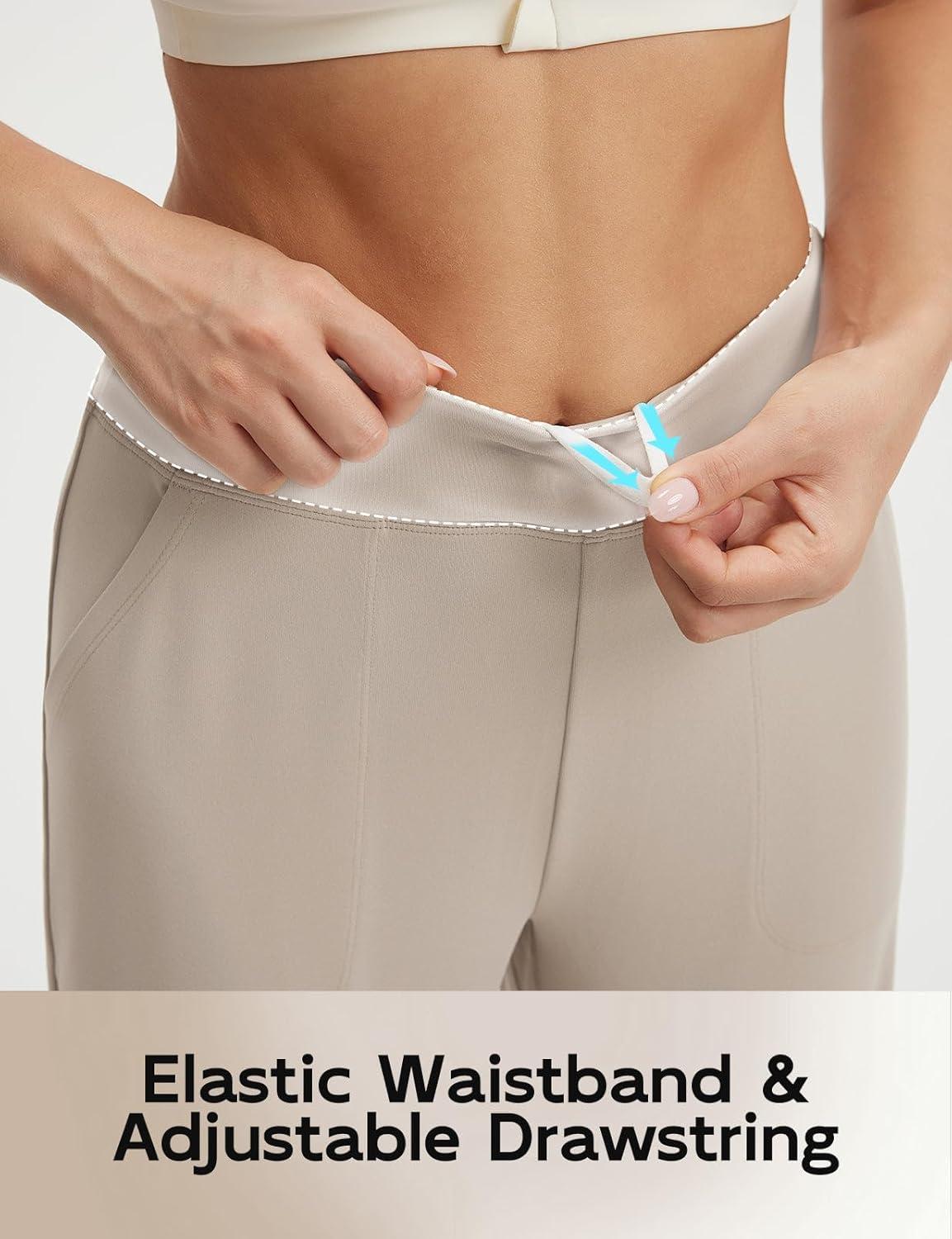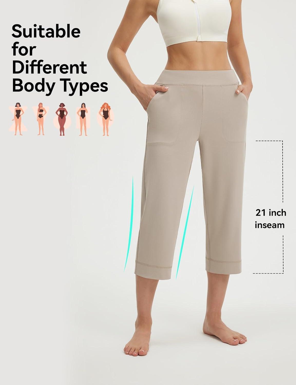 imagebaleaf Womens Capri Pants High Waisted Straight Leg Yoga Capris Leggings with Pockets Crop Workout 21 Summer PantsKhaki