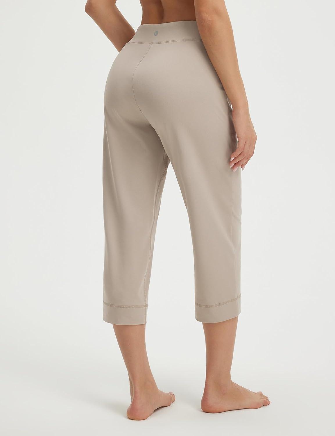 baleaf Womens Capri Pants High Waisted Straight Leg Yoga Capris Leggings with Pockets Crop Workout 21" Summer Pants(Khaki)