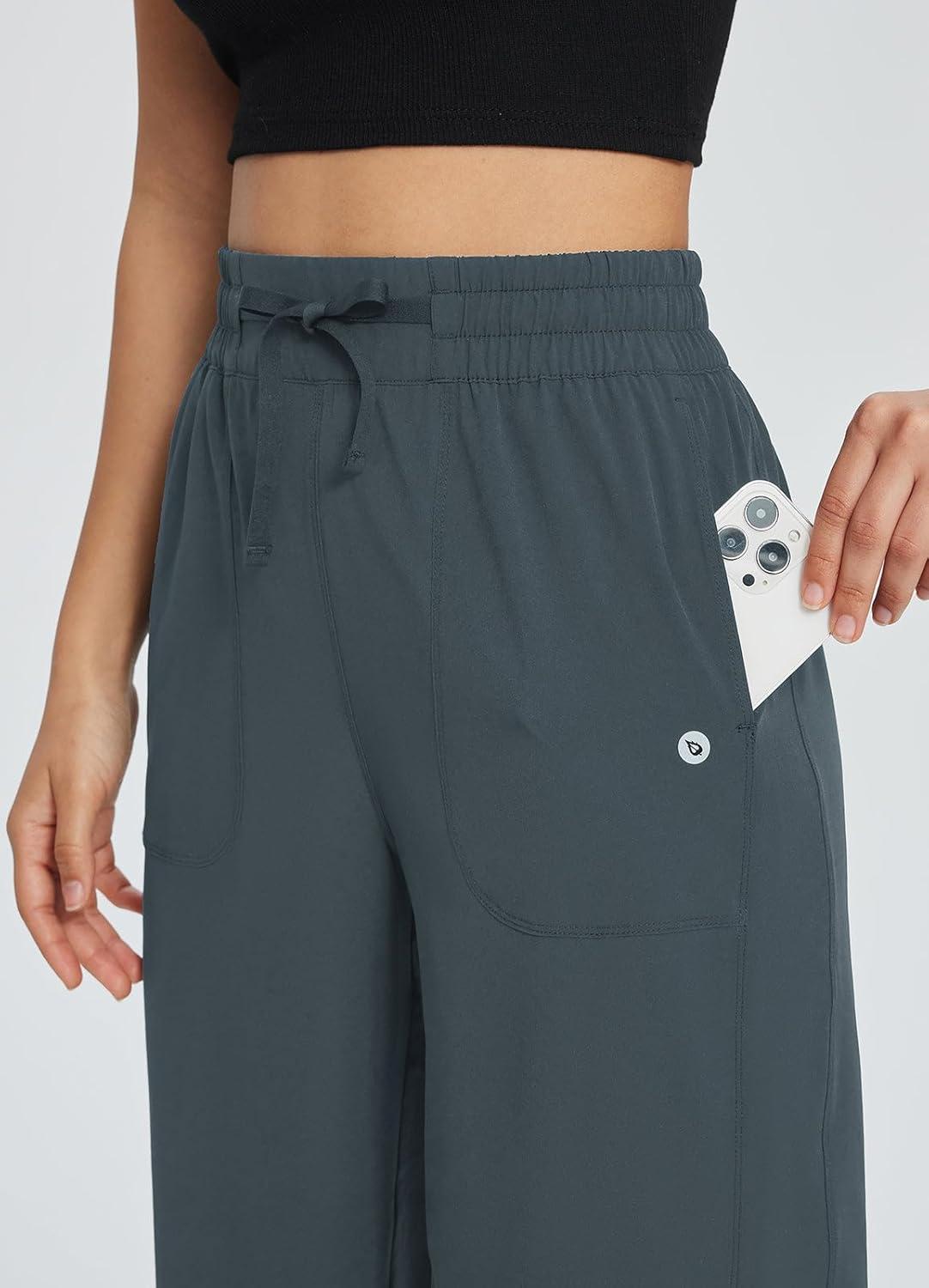 baleaf Women's Capri Pants Wide Leg Plus Size UPF50+ Lightweight Quick Dry Pants Casual Loose Sweatpants Hiking Walking(21" Capris-grey)