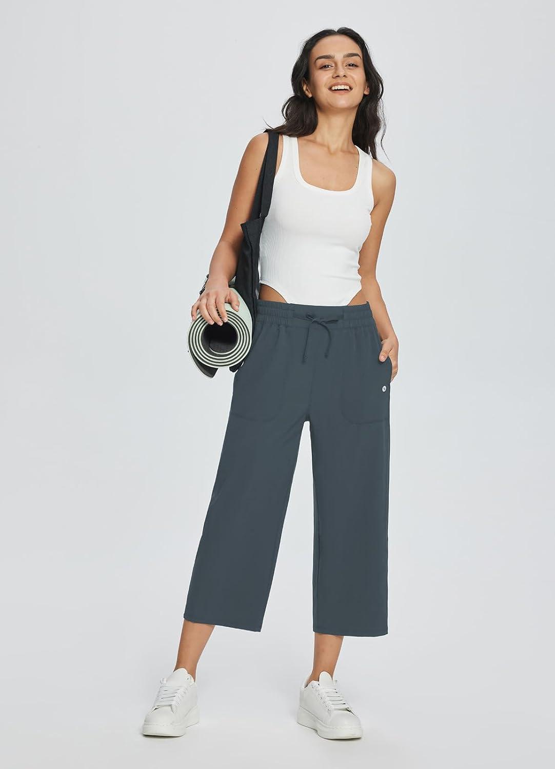 imagebaleaf Womens Capri Pants Wide Leg Plus Size UPF50 Lightweight Quick Dry Pants Casual Loose Sweatpants Hiking Walking21 Caprisgrey