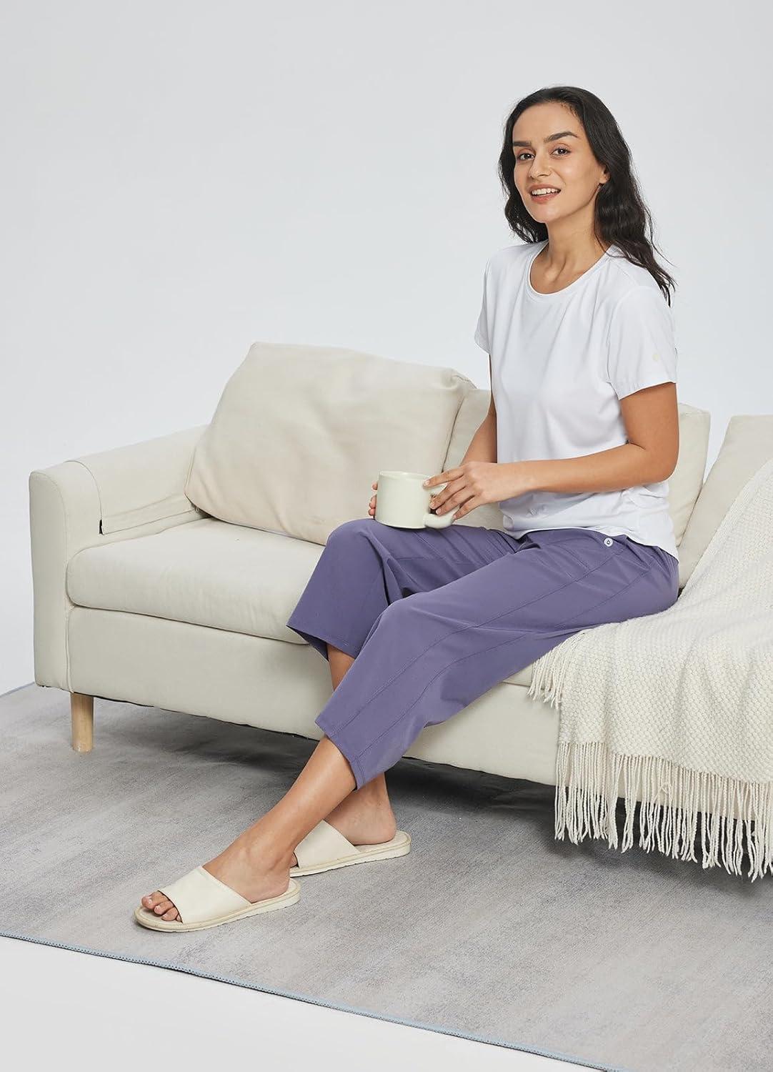 imagebaleaf Womens Capri Pants Wide Leg Plus Size UPF50 Lightweight Quick Dry Pants Casual Loose Sweatpants Hiking Walking21 Caprispurple